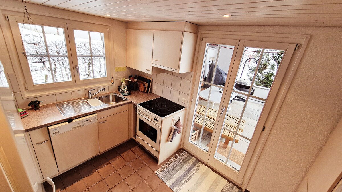 Apartamento encantador en el chalet, con comodidad y vistas al Brienz Rothorn. ¡Teleférico al Brienzer Rothorn en verano incluido! Acogedor apartamento con suelo de madera y calefacción por suelo radiante. Sala de estar con sofá, chimenea y balcón cubierto con vistas panorámicas. Cocina moderna, con lavavajillas y horno. 2 dormitorios: cama doble en la habitación principal y cama doble en la galería. A 800 m del telesilla, a 1,3 km del teleférico. NO SE permite fumar. NO SE admiten mascotas. * Pagado.