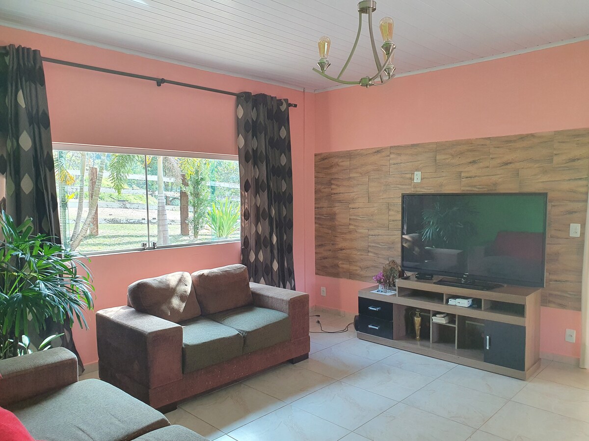 🥰🐸Relájate en Rancho dos Sapos, un remanso de tranquilidad al pie de las montañas de Minas Gerais. Disfruta de una naturaleza exuberante y preservada en una casa completamente nueva que combina lo rústico y lo moderno. Relájate en la piscina o en la piscina de hidromasaje, disfruta de la comodidad del aire acondicionado y del entretenimiento con 3 televisores inteligentes. Para quienes necesiten trabajar, hay un área dedicada con internet Starlink de alta velocidad. Hermosos alrededores y varios lugares para explorar, senderos y cascadas. ¡Perfecto para una escapada inolvidable!