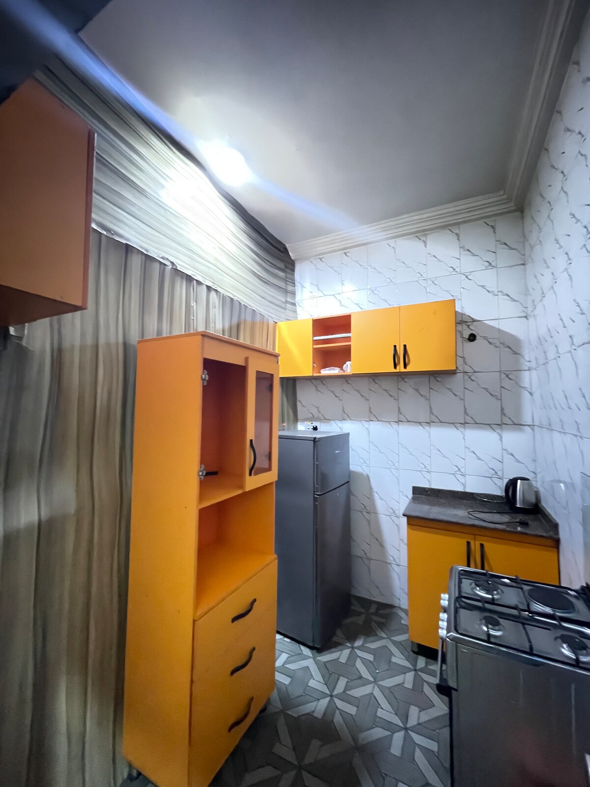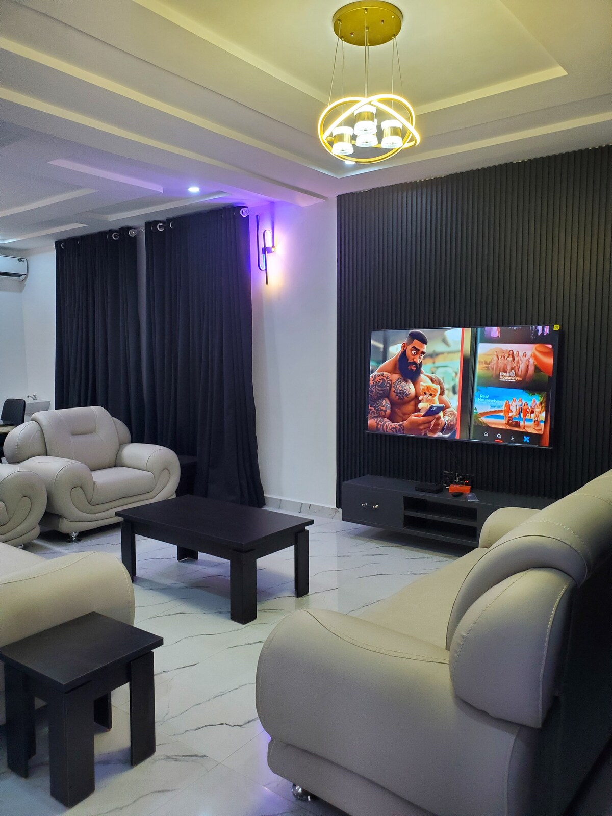 Bienvenido a Prodigy Luxury Apartment, un refugio con estilo donde la elegancia se une a la comodidad. Ubicado en un barrio seguro y tranquilo, nuestro espacioso apartamento ofrece electricidad y seguridad las 24 horas del día, los 7 días de la semana, para una estancia sin preocupaciones. El apartamento está totalmente alimentado por energía solar, disfrutarás de luz ininterrumpida y elementos esenciales. Perfecto para los huéspedes que buscan tranquilidad, comodidad y un toque de lujo. Ten en cuenta que, debido al sistema solar, nuestro aire acondicionado y calentador no funcionan.