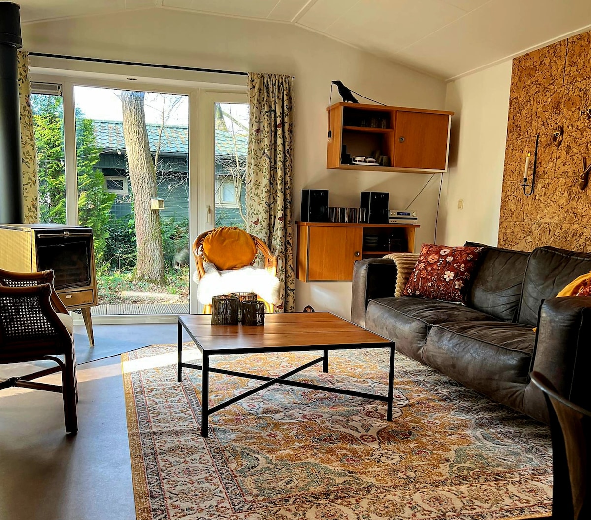 Bienvenido a 'Paulus', una casa de vacaciones única y romántica con total privacidad en una pequeña finca en el Veluwe. Grandes ventanales sin vistas, 1500 m² de terreno forestal vallado y una bañera de hidromasaje privada ofrecen un refugio natural donde el tiempo se detiene. El cálido interior con detalles de los años 70 combina con la colección LP, reuniendo ambiente, música y estilo. En el interior encontrarás una chimenea, un acogedor dormitorio y una cocina totalmente equipada. Perfecto para la paz en la naturaleza con una verdadera sensación de hogar