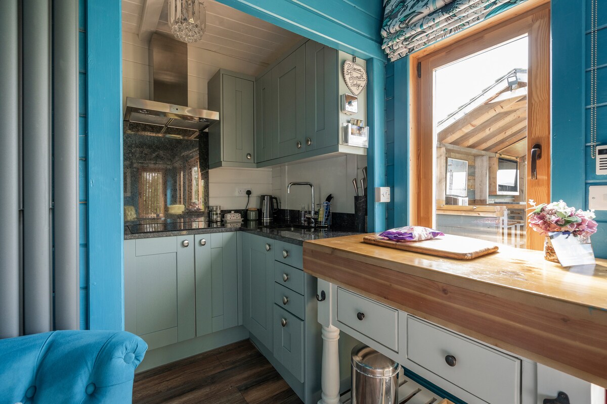 Un impresionante carromato de pastor en una hermosa ubicación junto al lago. Situada en la parte trasera de una granja en funcionamiento y un centro ecuestre, la cabaña está bien equipada con una decoración moderna. Los visitantes podrán utilizar la cabaña, el impresionante fogón y la barbacoa. Se adjunta un hermoso jacuzzi de leña privado para tu uso exclusivo. También hay una sauna a pocos pasos. El lago está bien vallado, seguro y muy privado. Los visitantes pueden pescar en el lago de carpas muy bien abastecido, con múltiples peces que se acercan a las 40 libras.