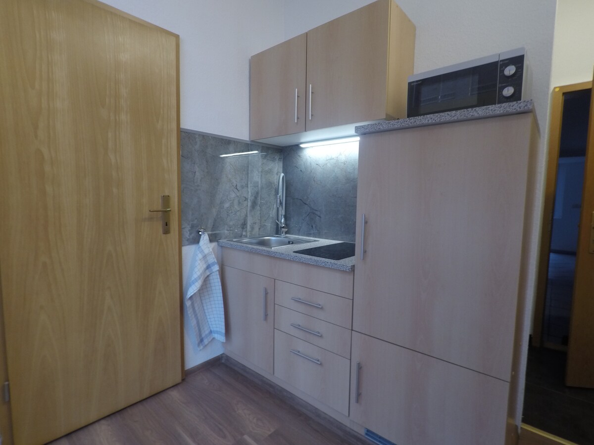 El apartamento tiene una gran sala de estar/dormitorio con chimenea. Hay una cocina moderna y un baño de alta calidad con ducha, bañera e inodoro. La terraza invita a relajarse en la naturaleza. El aparcamiento está justo delante de la puerta. El pintoresco pueblo con castillo está rodeado de bosques y numerosas rutas de senderismo. Hay una estación de tren donde los trenes a Ilmenau y Erfurt salen cada hora. A poca distancia hay una panadería y otras tiendas.