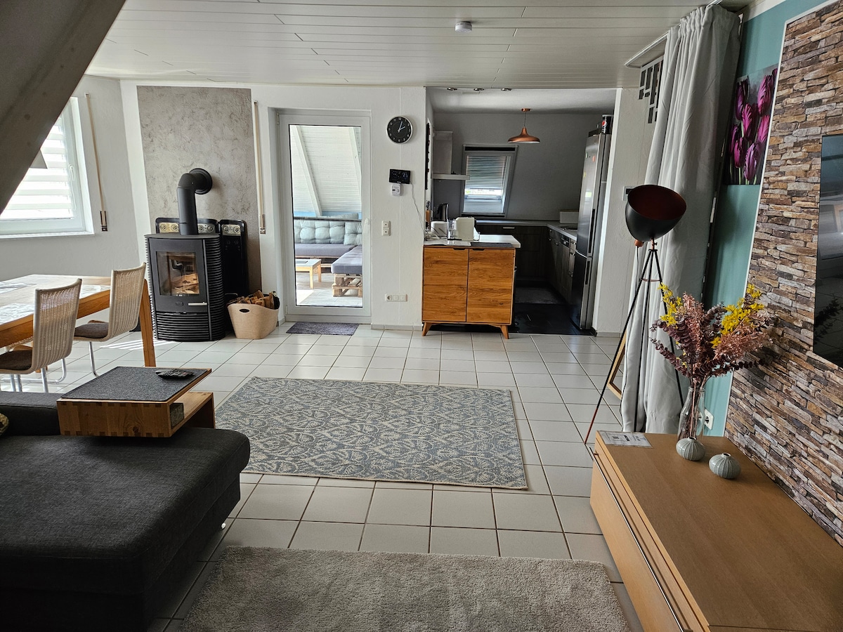 Apartamentos a estrenar,modernos y exclusivos a solo 700 metros de Playmobil. - Ideal para grupos,empresas, familias numerosas o amigos. Si dos familias se reúnen,cada familia usa su propio baño. - muebles acogedores y modernos. - Absolutamente totalmente equipado: juguetes y libros para los niños. - Estacionamiento gratuito justo enfrente de la casa. - Wifi gratuito -Restaurante , "Linder Grube" justo al lado de la casa. - Senderos para caminar en las inmediaciones,bosques,granja con estación de servicio de leche a 500 m.
