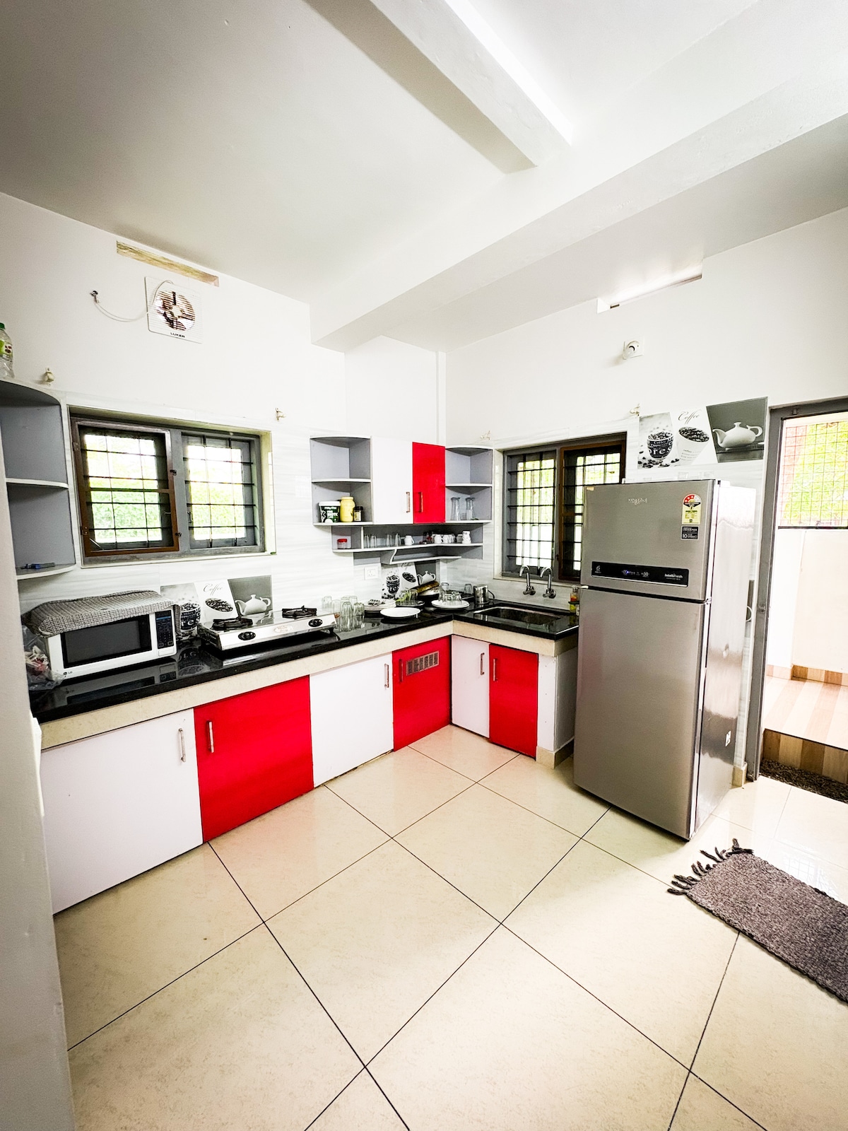 A spacious 4-bedroom ground-floor home with a separate hall, dining area, and two fully equipped kitchens — ideal for families or groups on extended stays. The property overlooks a lush green field with misty mornings, set in quiet, scenic surroundings. Fully furnished with cooking gas, fridge, water heater, purified drinking water, and power backup. All windows fitted with mosquito nets. Grocery and food delivery available to the property. 15 min from BirthVillage Kakkanad.