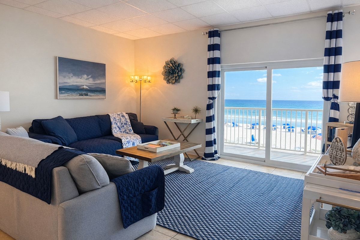 **Recently Updated Interior!** Experience the stunning Gulf of America from the comfort of this beachfront 2-King bedroom, 2-bath condo located directly on Pensacola Beach, named America’s Best Beach by the Condé Nast Traveler Readers’ Choice Awards! This beach condo boasts a vibrant interior filled with beach-themed accents, a private balcony with sweeping ocean views, and access to 2 pools (1 heated) and a hot tub. Enjoy the best restaurants and shopping on the beach, all within a short walk.