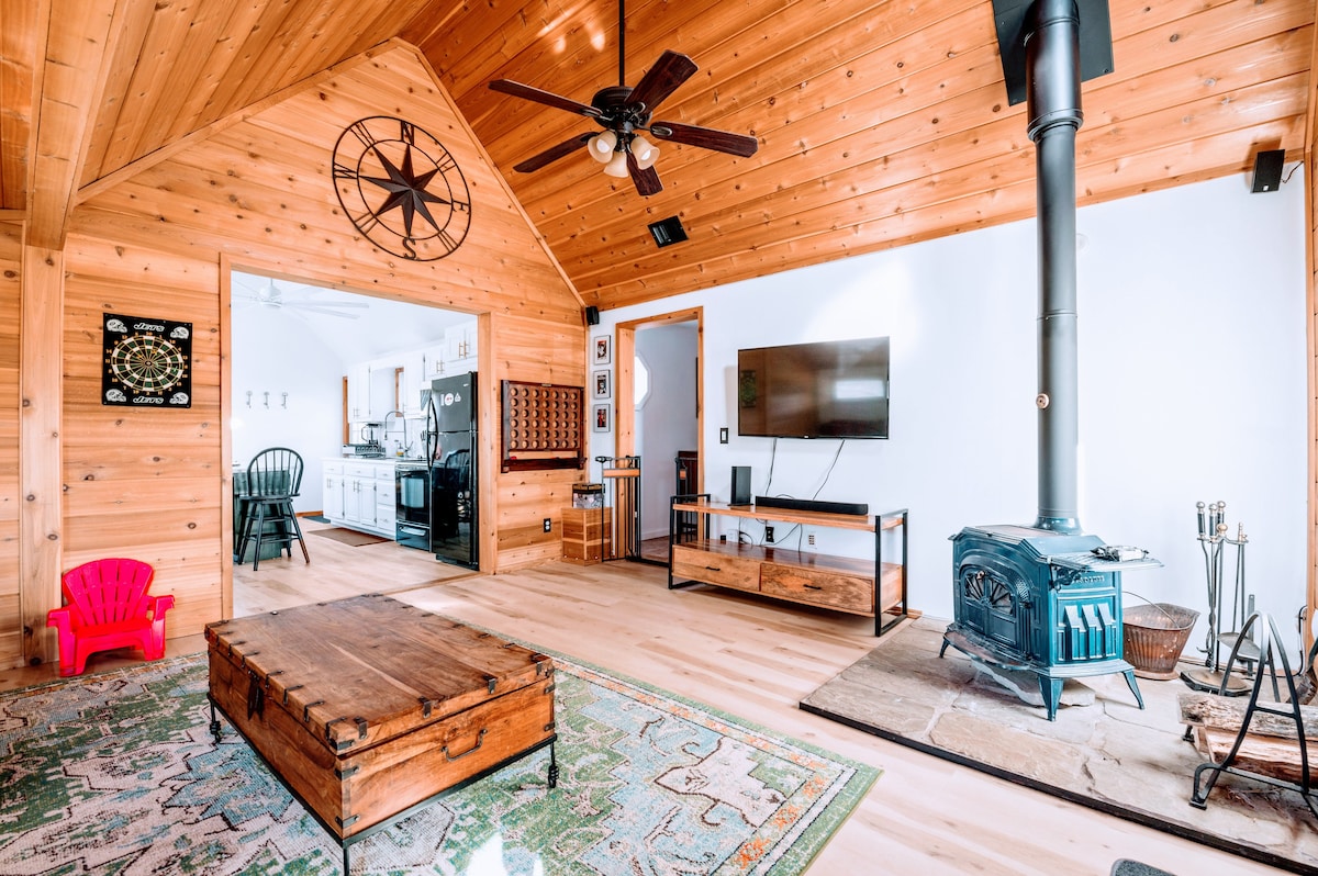 ¡Te damos la bienvenida a las hermosas Catskills con nuestra cabaña moderna/rústica con un ESTANQUE PRIVADO PARA NADAR situado en 6 acres con encantadoras y amplias vistas a la montaña y respaldado por 240 acres de TERRENO DE NYC DEP PARA SENDERISMO, CAZA Y MÁS! ¡La casa está totalmente equipada para que la disfruten en todas las estaciones! Date un chapuzón, un barco, un pez o un patín de hielo en el ESTANQUE. Relájate en el JACUZZI o relájate en la HAMACA o en LAS SILLAS ADIRONDACK alrededor de la FOGATA mientras disfrutas de las vistas. ¡Disfruta asando a la PARRILLA DE GAS!