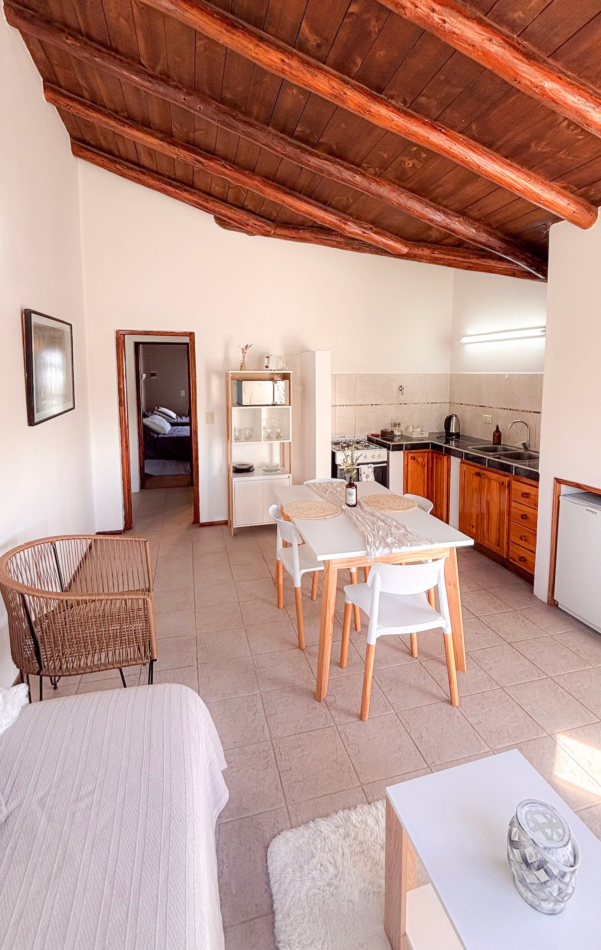 Enjoy a peaceful and comfortable stay in this modern, spacious apartment just a few blocks from downtown Esquel. Perfect for couples, families, or small groups looking to explore Patagonia’s natural beauty. The apartment has tall ceilings and bright, open spaces, creating a relaxing, airy atmosphere. It’s fully equipped for up to four guests, with private parking, high-speed Wi-Fi, DirectTV, and access to Netflix, HBO, and Disney+. An outdoor laundry area is also available for your convenience.