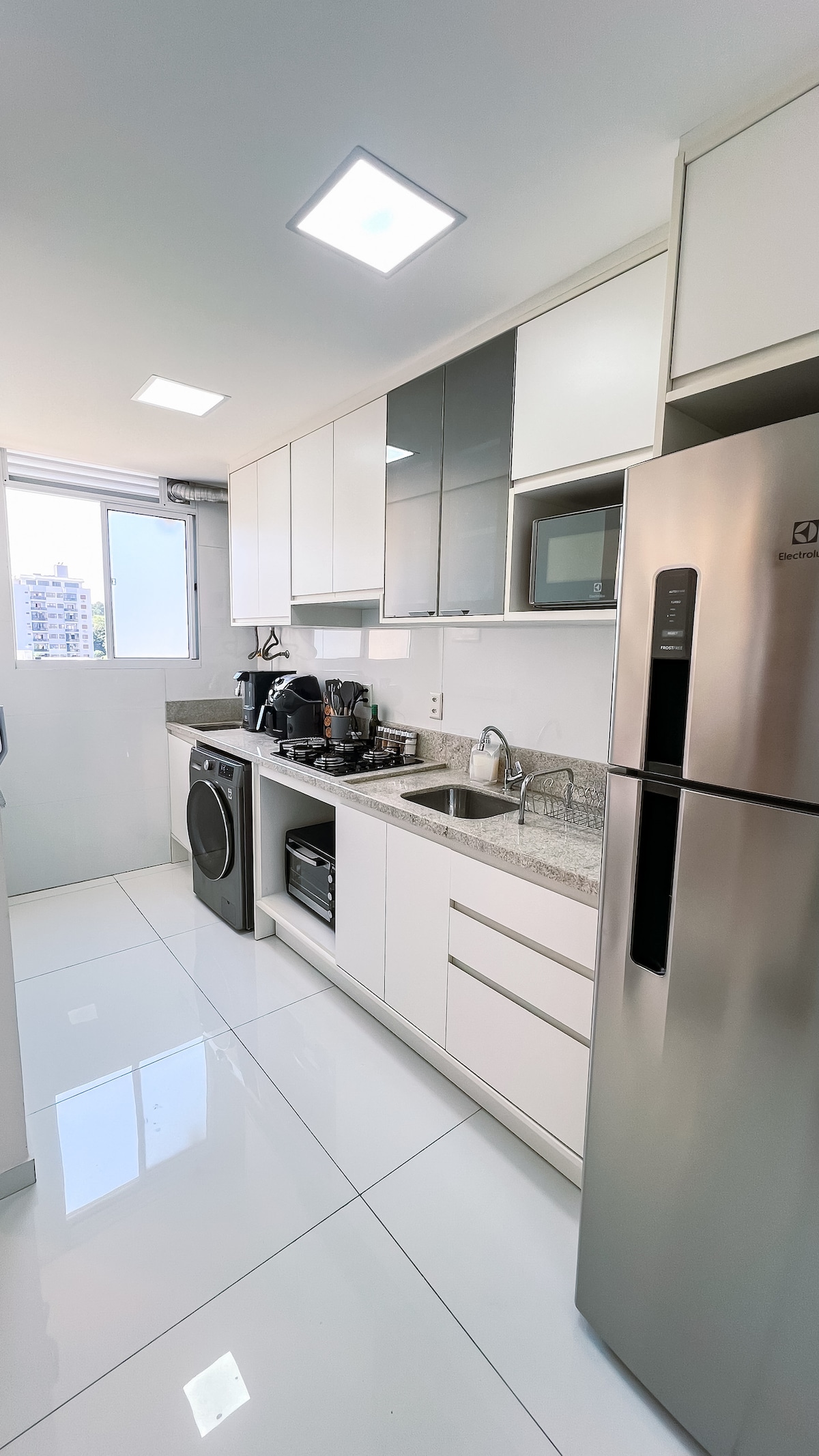 Lleva a toda la familia a este fantástico lugar con mucho espacio en el centro de São Leopoldo a 2 cuadras en metro, supermercados, plantas frutales y restaurantes. Es decir, puedes hacer casi cualquier cosa sin sacar un auto del garaje. Aparcamiento privado en el edificio con ascensor. Gran barbacoa en el balcón de al lado sala de TV (60") con gran comedor. 200MB Wi-Fi. Cocina completa con horno microondas y horno eléctrico. Todas las comodidades en un apartamento de alta gama cerca de todo.