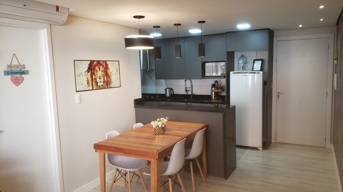 Disfruta de una experiencia elegante en este lugar bien ubicado. El departamento está casi frente a la puerta EXPOINTER 7. Gran opción para aquellos que exhibirán en el mercado. Tiene un enorme balcón, y en él una mesa de billar y barbacoa. Puedes jugar y ver la feria. Tenemos toda la infraestructura para darles la bienvenida. Habitaciones equipadas y acogedoras.