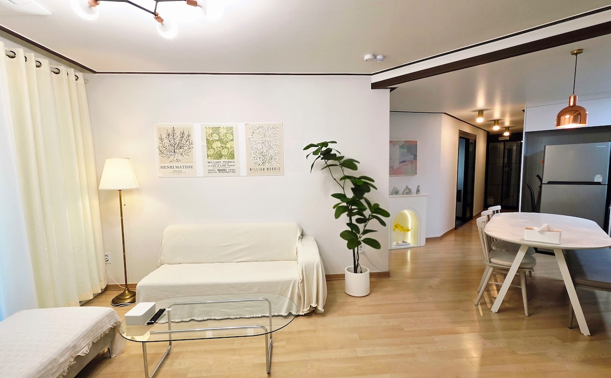 Calificación promedio: 5 de 5, 4 reseñas[Moment k] 4 habitaciones / 1,5 baños / Capacidad máxima para 9 personas / A 2 minutos de la estación de Anam / Hospital de la Universidad de Corea / A 22 minutos de Myeong-dong / A 30 minutos del Palacio Gyeongbok / A 30 minutos de Hongdae