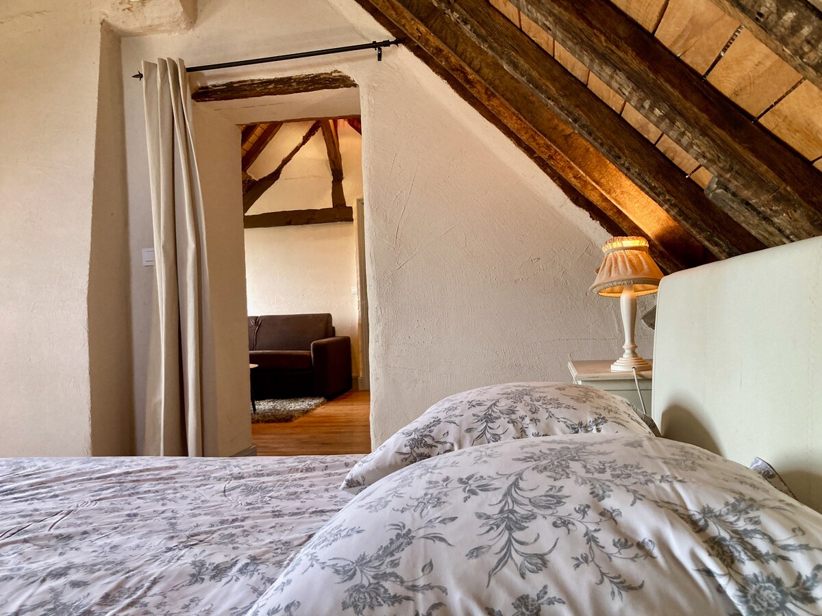 Appréciez le cachet de cette suite spacieuse de 44m2 à l'étage de ma belle maison en pierre . Créée récemment, cette suite est décorée dans un style épuré. ✓ Entrée indépendante ✓ Lit "King Size" (180/200) fait à l'arrivée ✓ Salle d'eau privative ✓ WC séparé ✓ Serviettes de toilettes fournies ✓ Wifi ✓ Télévision connectée ✓ Coin salon ✓ Mini-frigo ✓ Cafetière ✓ Bouilloire ✓ Stores occultants ✓ Place de parking Que diriez-vous de vous mettre au vert le temps d'une nuit ou plus ? 🌳