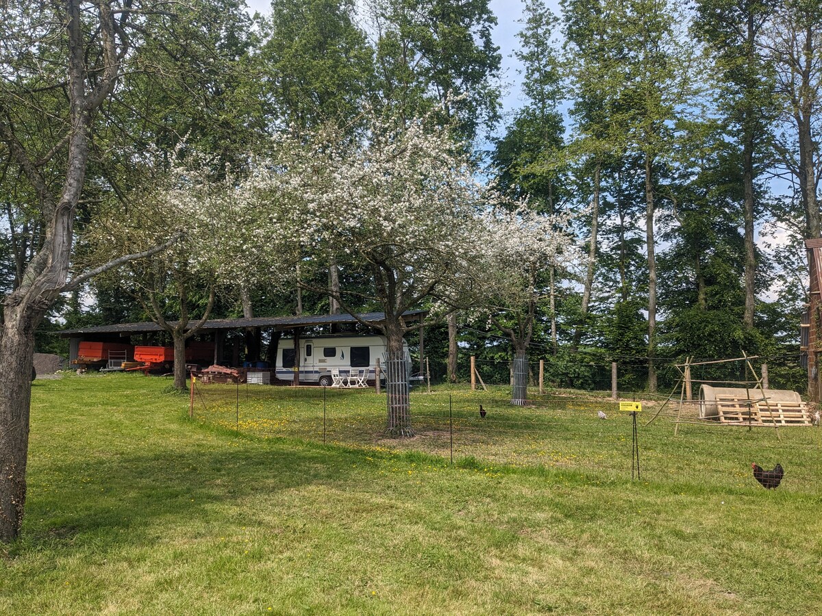 Ponemos a su disposición una caravana totalmente equipada de madera en el huerto que bordea nuestra casa Para 2 o (2 niños , 2 adultos) le permitirá pasar una noche o una semana en un lugar inusual