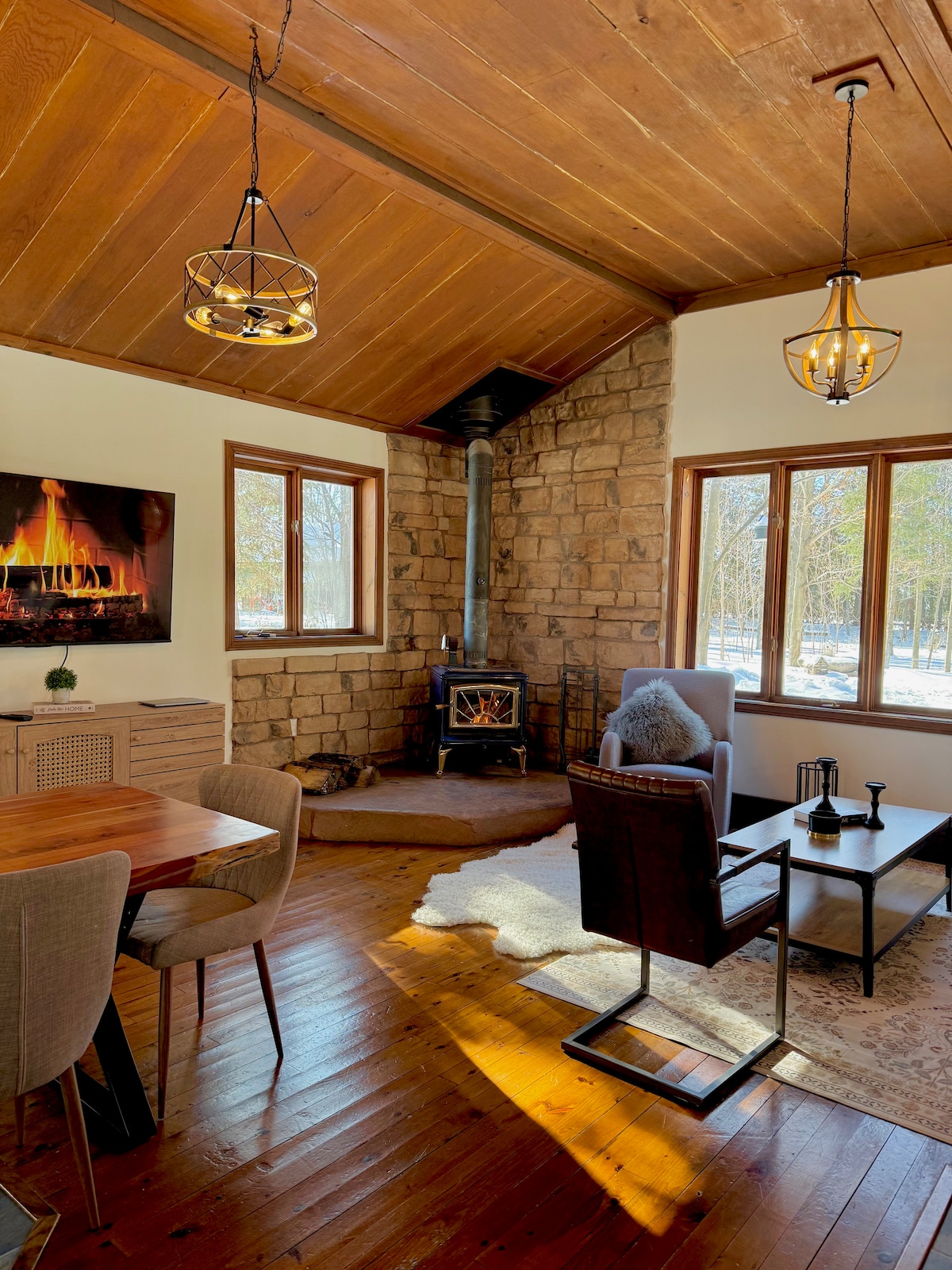 Escape to Heirloom Tiny Home - where macro luxury meets a micro footprint. Nestled on 23 peaceful acres, surrounded by aspen and pine forests, just 10 minutes from the picturesque town of Elora. Wake up to serene pond views as horses and sheep graze in your view. Organic linens, artisanal soaps, and a spa-like bathroom soothe the senses. Cozy up by the indoor fire and gaze at the stars. Enjoy fine dining at the Elora Mill and Spa, enjoy popular shops or hike the Elora Gorge nearby.