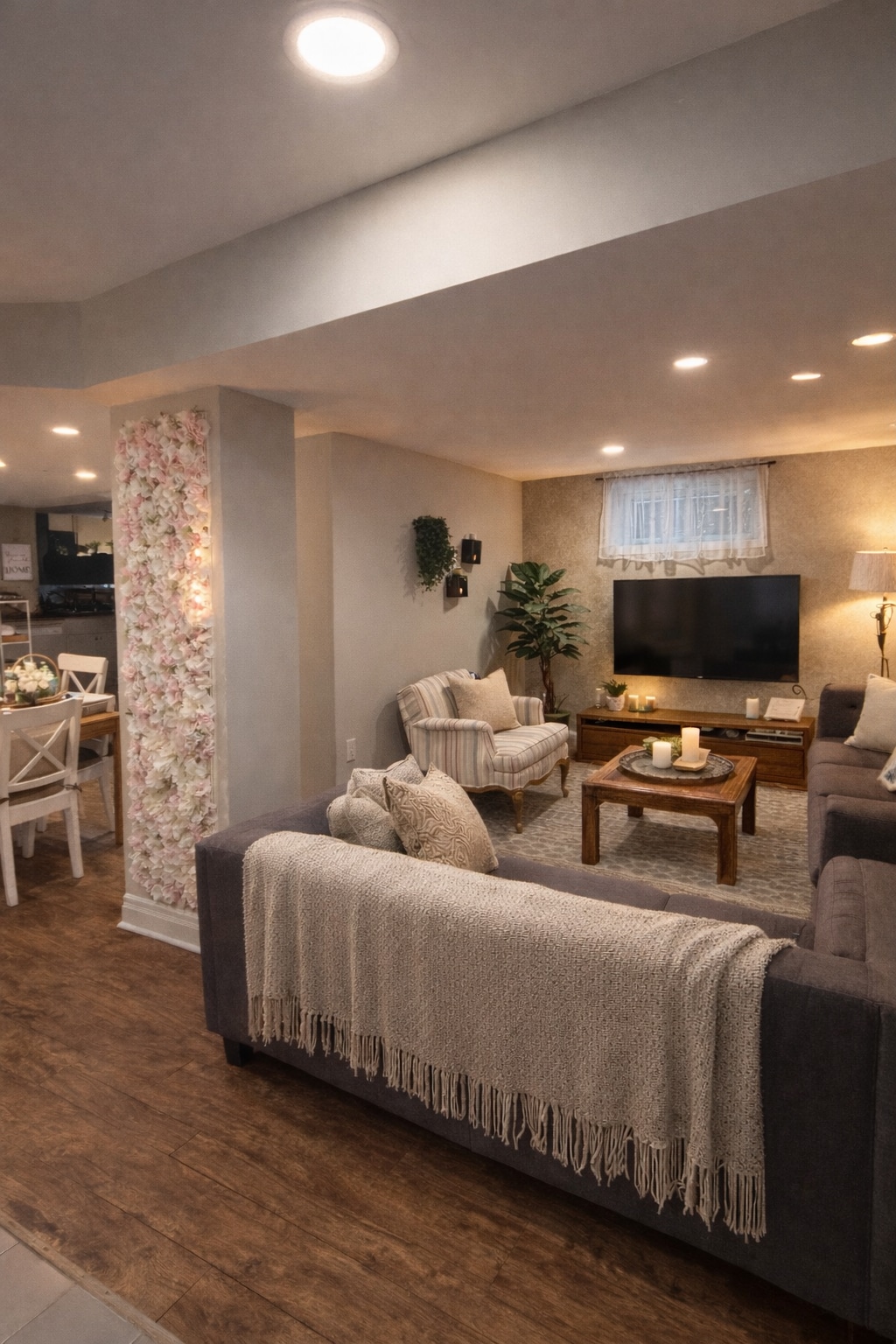 «Donde la comodidad se une con el cuidado» Esta suite de lujo en el sótano viene completamente amueblada con todos los servicios que necesitas. Tiene una ubicación céntrica y tiene tres espacios privados de trabajo o estudio. Los dos dormitorios son amplios, cada uno tiene su propio baño separado para tu privacidad. Hay un colchón de aire adicional con bomba incorporada tamaño queen junto a las camas tamaño king y queen para mayor comodidad. Al grupo le encantarán los televisores inteligentes con suscripciones por cable completas e internet 5G rápido.