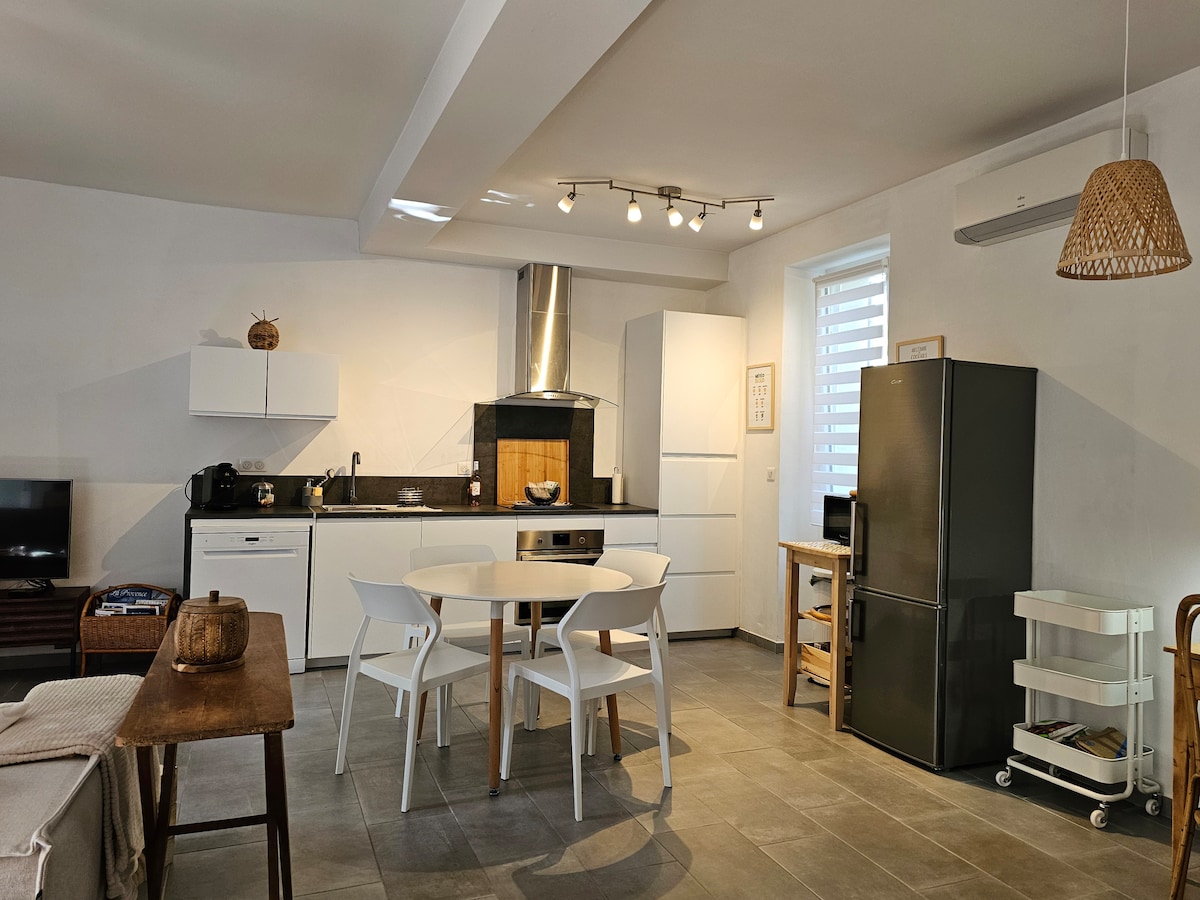En el centro del antiguo pueblo de Eygalières, ideal para disfrutar de las tiendas y de la vida del pueblo sin coche. Ideal para parejas que deseen tomarse el tiempo para tener tiempo!!!! Bien equipado este estudio para 2 personas ( con posibilidad de dormir para niños), le permitirá pasar agradables momentos tranquilos. Cafetera TASSIMO. Terraza privada con barbacoa. 48 horas antes de su llegada recibirá la información para la basura y el estacionamiento,recuerde mirar los correos electrónicos o notificaciones