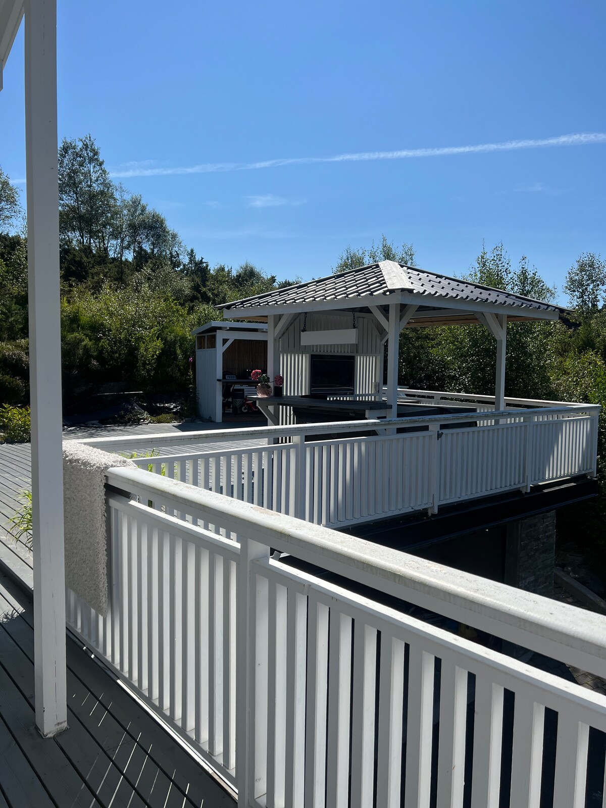 Gran y encantadora casa unifamiliar con una ubicación idílica justo al otro lado del puente de Askøy ¡perfecto para unas vacaciones en familia o un descanso relajante de la vida cotidiana! Aquí vivirás rodeado de una hermosa naturaleza y podrás disfrutar de una gran terraza soleada de más de 100 m² con bañera de hidromasaje al aire libre, zona de barbacoa y buenas oportunidades para disfrutar de noches acogedoras al aire libre. El centro de Bergen está a solo 15-20 minutos en coche, también puedes tomar la lancha rápida desde Kleppestø, un cómodo viaje de 10 minutos que te lleva directamente a Bryggen en el corazón de Bergen.
