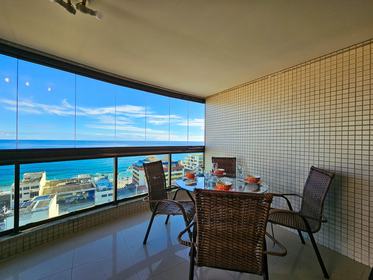 ¡Maravilloso apartamento, totalmente equipado, con un gran balcón y una vista impresionante del hermoso mar de Salvador! Cocina completa. WiFi de alta velocidad. Ubicado a solo 500 metros de Farol da Barra en un barrio con excelente infraestructura de apoyo y servicios, cerca de las mejores playas de Salvador y los principales lugares de interés.