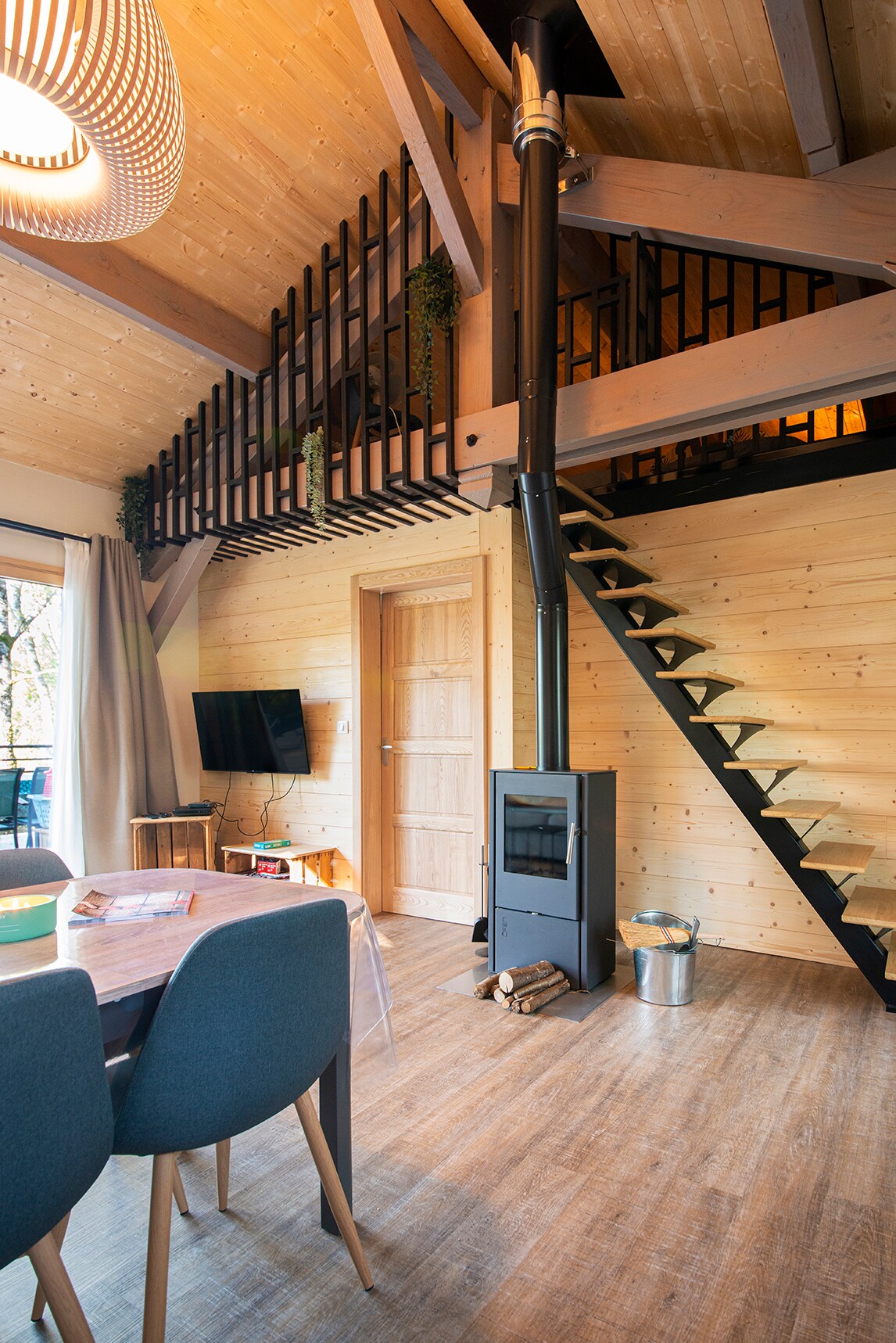 Petit cocon de bien être et de douceur , la cabane à sucre a été entièrement conçue avec des matériaux nobles mêlant le bois , la pierre et le métal. Le jaccuzi , le sauna finlandais , et le filet d’habitation avec vue sur un étang privée donne à notre chalet un cachet unique Vous apprécierez la cheminée du chalet, véritable atout charme, qui crée une ambiance chaleureuse et authentique, parfaite après une journée en plein air.