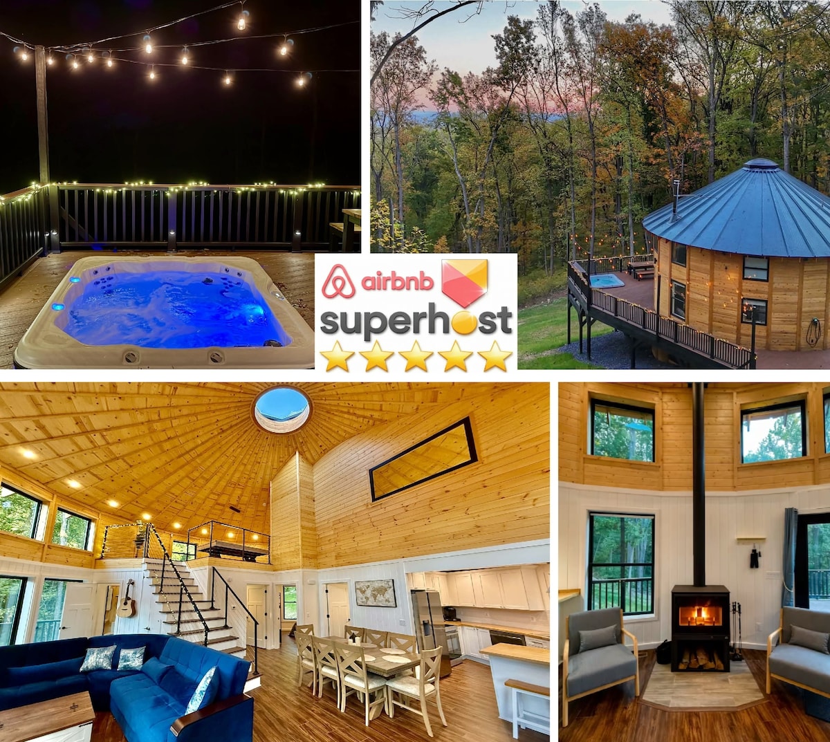 Escápate a la yurta de Front Royal, en Virginia, cerca del Parque Nacional Shenandoah. ¡Un nuevo refugio de lujo en el corazón de las impresionantes montañas Blue Ridge, ubicado a 1300 pies! La excepcional yurta Front Royal combina la elegancia moderna del glamping con comodidades de primer nivel, ofreciendo una escapada inolvidable. Disfruta de una yurta moderna de última generación, completa con bañera de hidromasaje hundida, terraza de 360° con impresionantes vistas, fogata, estación de carga de vehículos eléctricos, estufa de leña, TV HD de 77", PS5, mesa de billar, libros, juegos de mesa y más.
