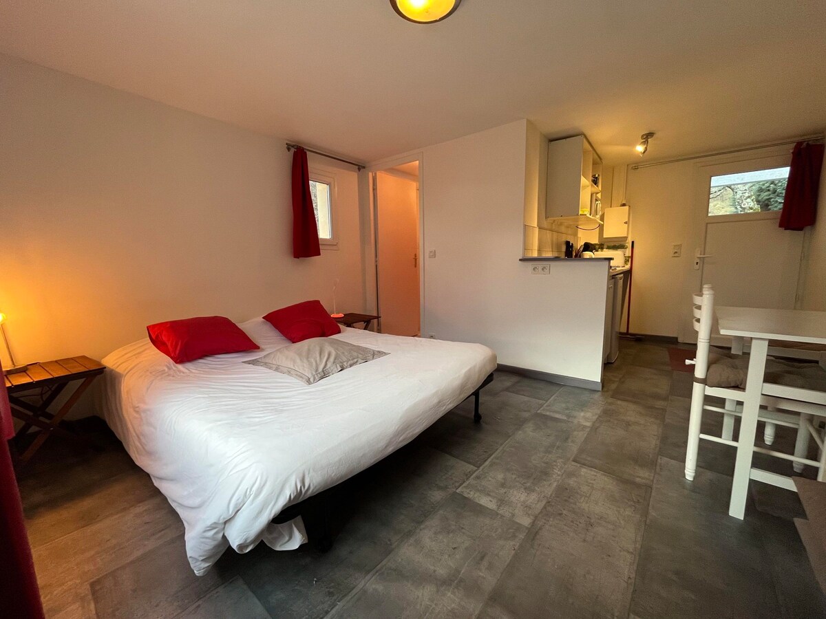Situé dans la partie ancienne du village, dans une rue piétonne, ce studio indépendant est au calme. La voûte en pierre permet d'avoir de la fraîcheur tout l'été. Chauffage au sol pour l'hiver. La surface est de 30m2 avec salle de bain et cuisine. On se rend à pied à la rivière pour s'y baigner et dans le village vous trouverez un bar, une boulangerie et un caviste. Départs de sentiers de randonnées juste au dessus. Possible de sortir une table pour manger devant dans la rue.
