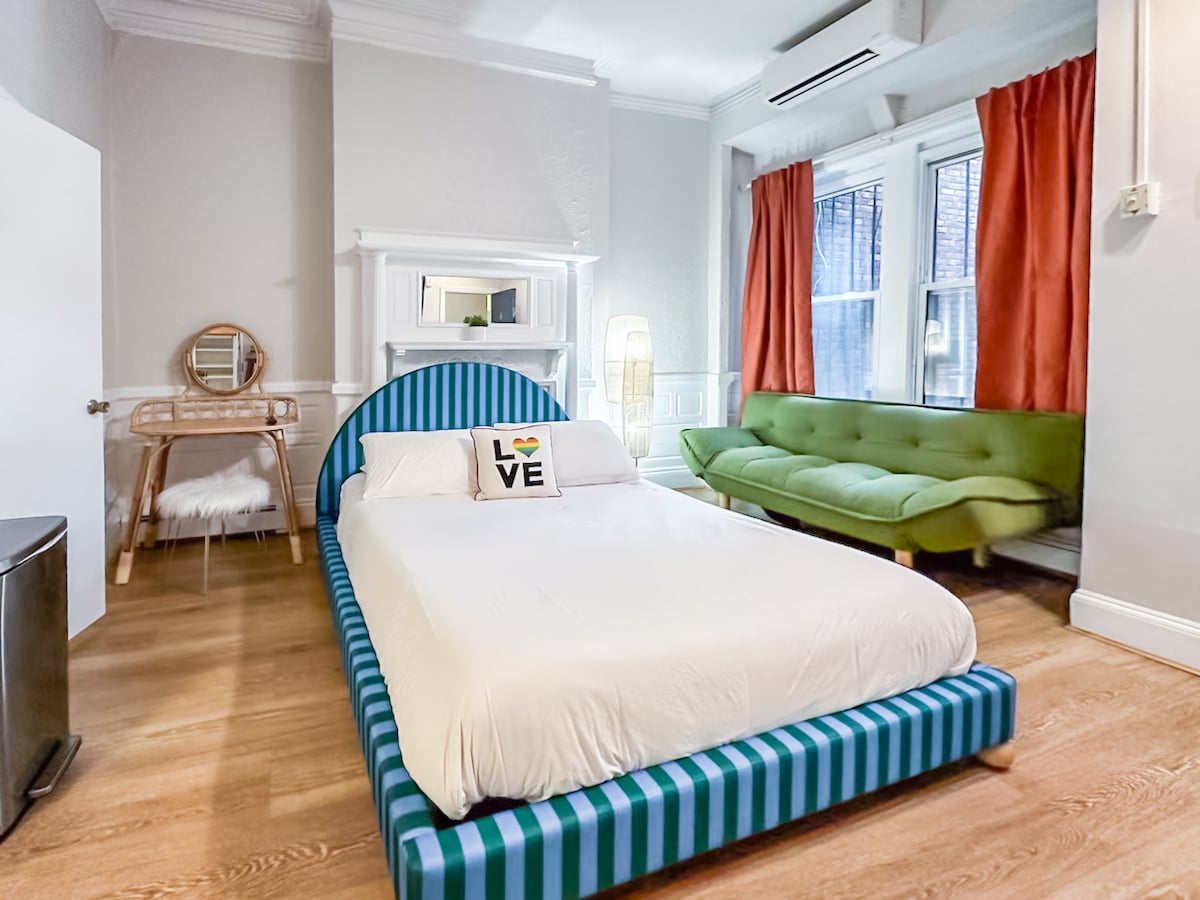 Una hermosa piedra marrón histórica totalmente renovada con una terraza privada en la azotea con vistas a la ciudad. Inspírate con este colorido y romántico estudio de arte lleno de libros, discos, arte y todas las comodidades del hogar en un barrio tranquilo con preciosas vistas. Convenientemente ubicado a pocos pasos del transporte público, universidades de clase mundial, instituciones médicas y museos. ¡A unos 22 minutos a pie de Fenway Park, MGM Music Hall y otras grandes atracciones!