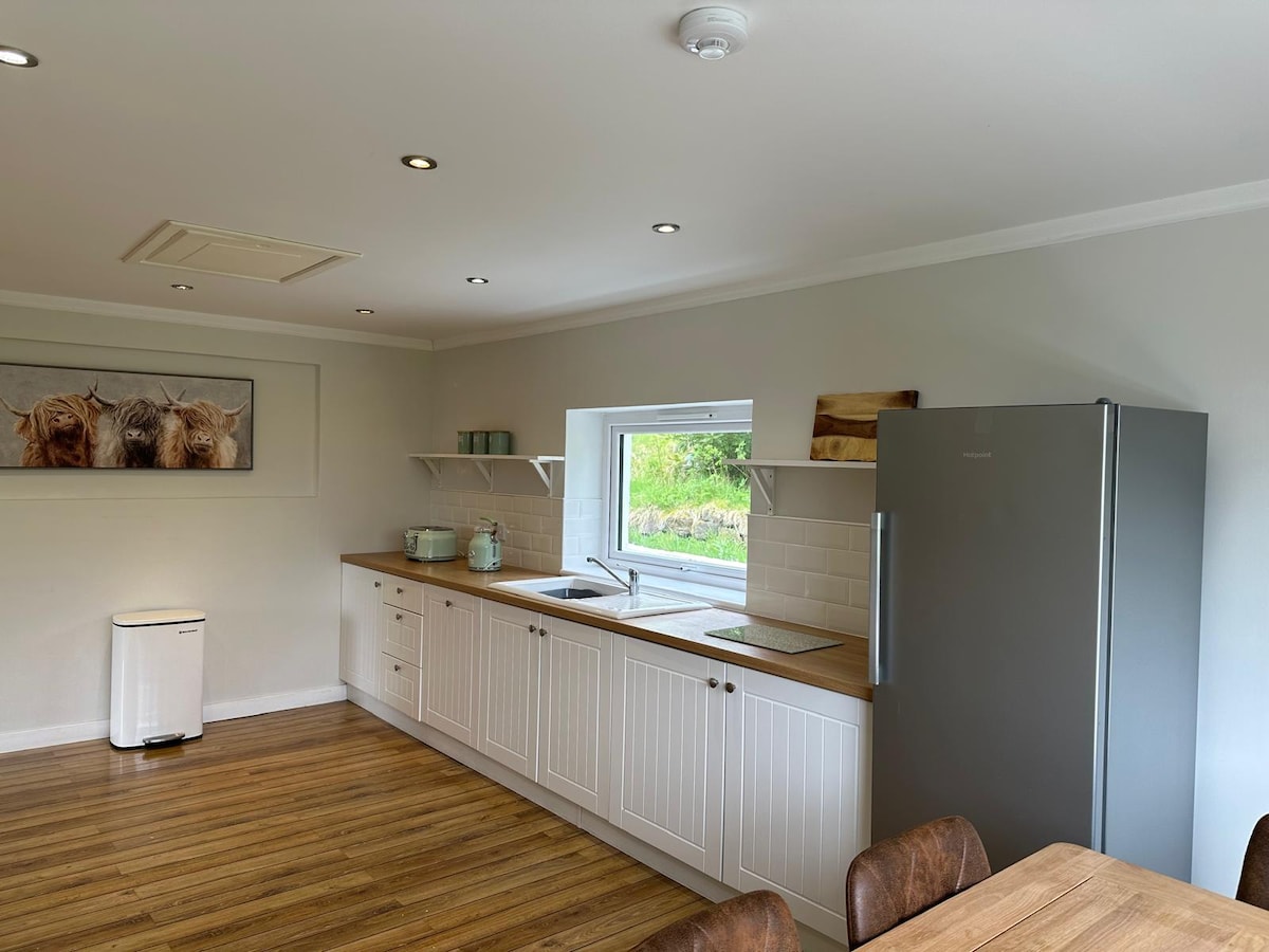 Disfrute de unas vacaciones encantadoras en nuestra casa de campo bellamente decorada con vistas a las montañas de Lewis y las aguas del lago Pooltiel en el noroeste de Skye. Nuestra ventana majestuosa te permite disfrutar de todos los estados de ánimo de Skye desde la mañana hasta la noche. La casa está ubicada a 5 minutos de Neist Point, a 15 minutos del restaurante de clase mundial tres Chimneys, a 25 minutos del castillo de Dunvegan. El lugar perfecto para unas vacaciones tranquilas pero activas. Por la noche, relájate frente a un fuego de leña o observa las estrellas.