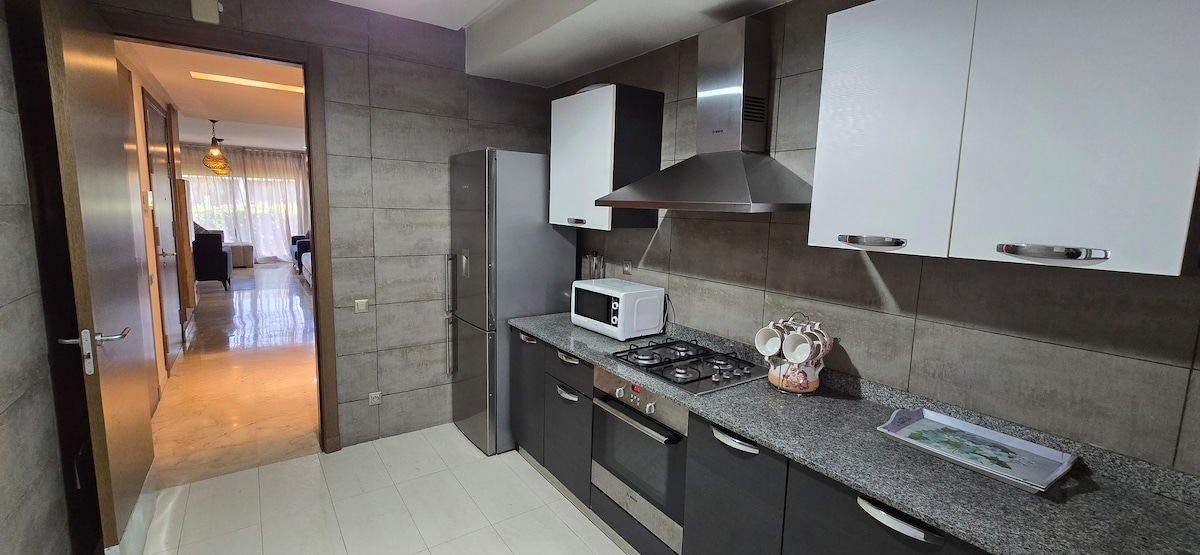 Apartamento situado en el corazón de Fez con impresionantes vistas al parque amueblado con mucho gusto y totalmente equipado para una estancia memorable. Se compone de: - 2 dormitorios con ropa de cama cómoda - 2 baños - un comedor - una sala de estar con pantalla de TV - una cocina equipada (horno, nevera, microondas, cocina de 4 fuegos ... ) - un balcón para tomar el aire con vistas Este apartamento está destinado a parejas marroquíes casadas , familias y turistas extranjeros.