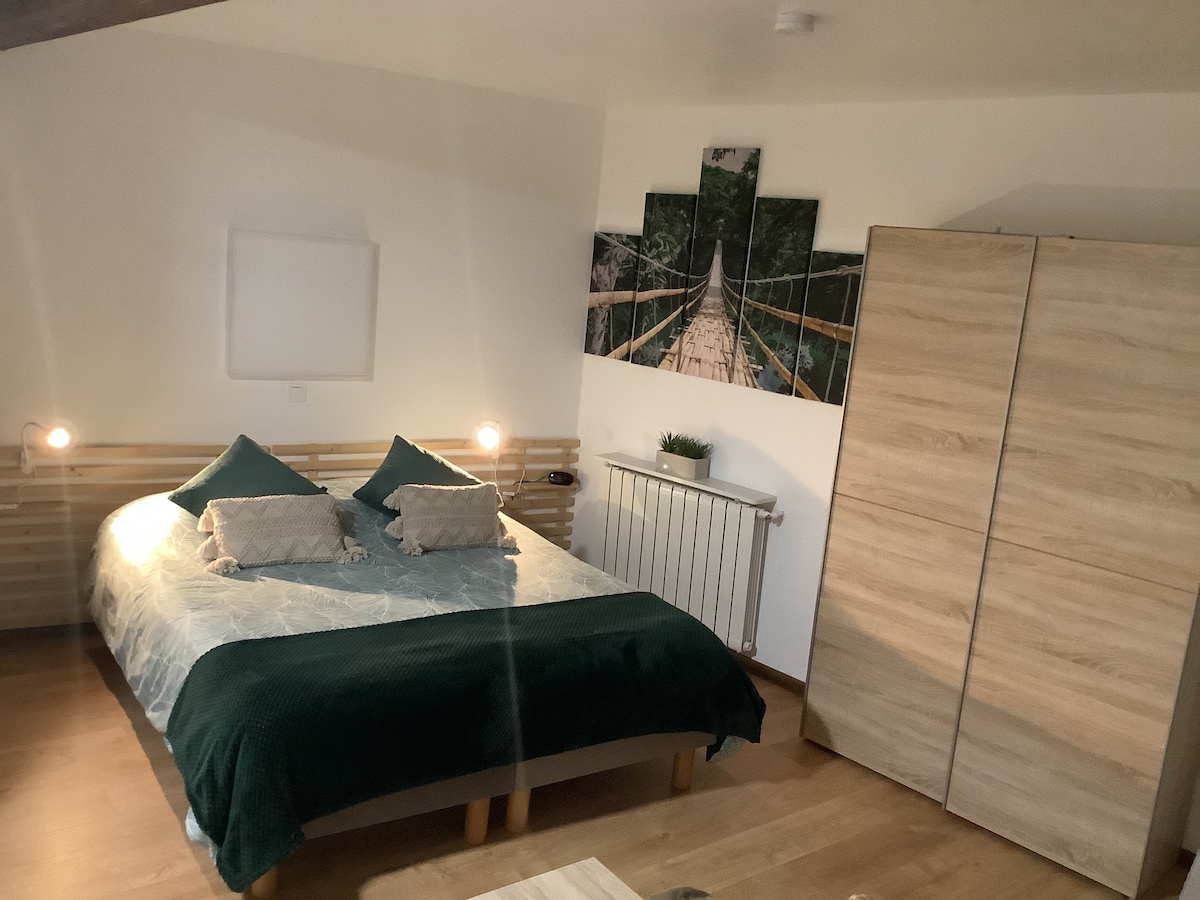 Relájese en este alojamiento tranquilo y elegante. Entrada a nivel del suelo Cama king size 160x200 Posibilidad de hacer 2 camas de 80x200 Más un sofá cama de 140 cm x 190 cm Ropa de cama cómoda. Encontrará una zona de estar con su televisor Así como la zona de cocina equipada. Cafetera Senséo Situado en una calle tranquila,cerca de muchos paseos. El acceso al garaje para bicicletas está permitido bajo petición. Posibilidad de cargar un coche eléctrico a 200 metros. El alojamiento no es accesible para personas con movilidad reducida.
