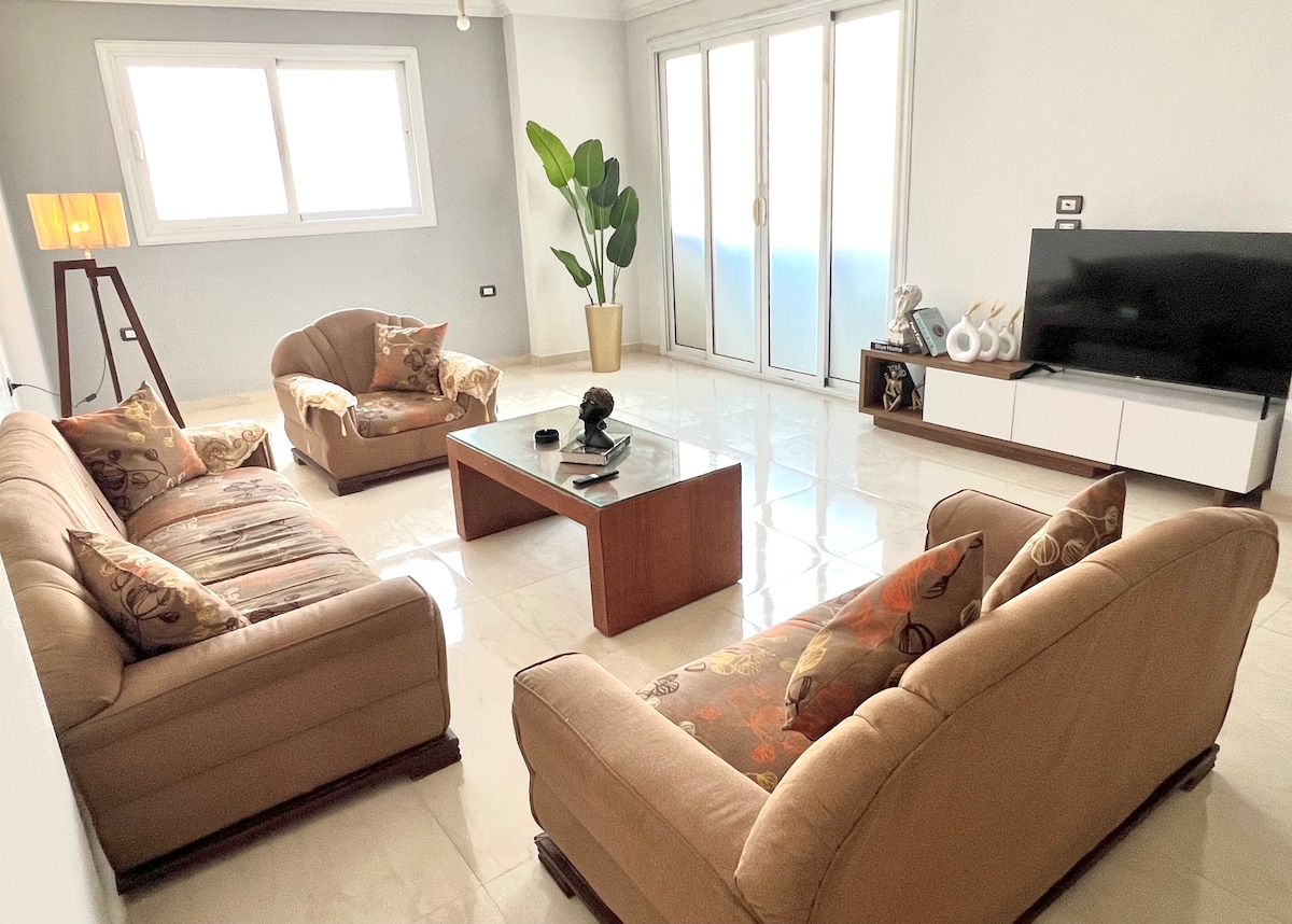 - Este lugar único tiene un estilo / apartamento con servicios ultramodernizado. - No se permiten géneros mixtos ilegalmente. - Pareja de matrimonio consuetudinario está bien - Rampa en la entrada del edificio para sillas de ruedas y equipaje. - Supermercado Seoudi: todo tipo de queso de primera calidad (queso blando y duro) del supermercado Seoudi (junto al edificio del apartamento). - Lavandería, peluquero, barbería, mezquita , canto. - Paquete «Ultimate» de BeIN/Shahid VIP SSC
