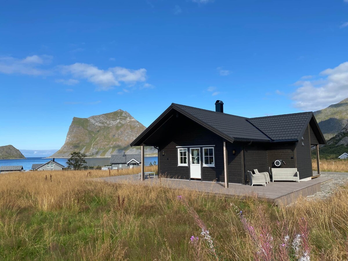 ¡Disfruta de tus vacaciones en Lofoten en este lugar único! La casa tiene 2 plantas y 3 dormitorios con espacio para 6 personas. Baño, cocina y sala de estar totalmente amueblados/equipados. Amplia terraza alrededor de la casa con varios comedores. Aparcamiento y cargador para coche eléctrico. Jacuzzi junto al mar. Tablas de paddle surf disponibles. Wifi de fibra y escritorio con vistas. Situado cerca de varios lugares de interés como la montaña Ryten y la playa de Kvalvika. La playa de Flakstad es un lugar para practicar surf cerca🏄🏼♂️ Alquiler de Tesla en la ubicación a través de Getaround.
