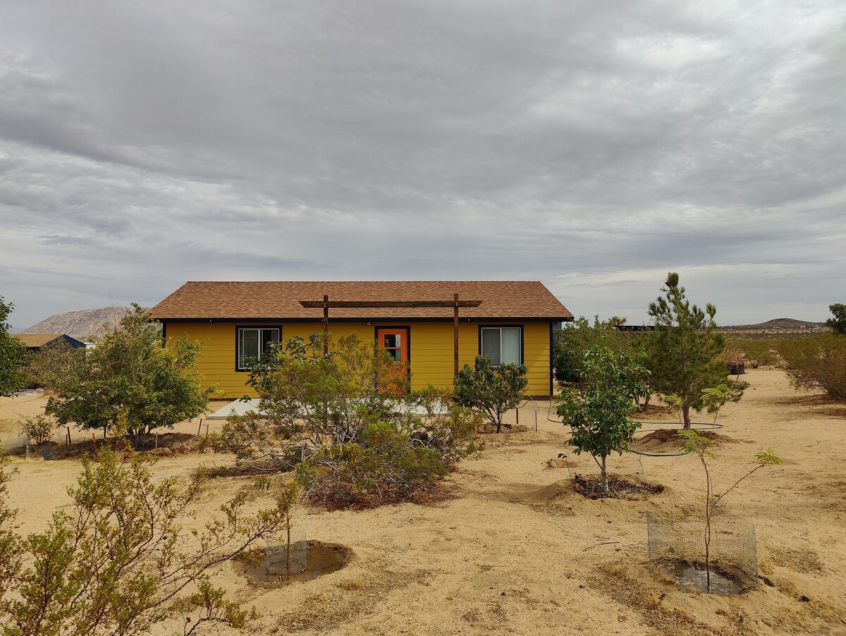 La casa es abierta con luz natural, perfecta para un fin de semana romantico, o para trabajar desde casa en un ambiente privado. Disfrute de una cabaña de granja renovada de mediados de siglo en 5 acres de paisaje desértico, donde abundan las vistas. Las caminatas locales compiten con el Parque Nacional JT (sin tanta gente): 600 acres locales de tierras gubernamentales ofrecen caminatas, vehículos todo terreno, campamentos o cualquier cosa que le gustaría hacer en soledad.