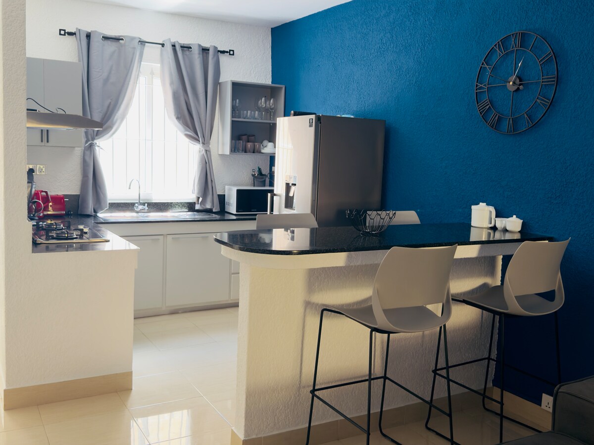 Relájate en nuestro acogedor apartamento de 1 dormitorio a solo 3 minutos de la playa de Flic en Flac. Disfruta de las vistas al mar y a la montaña desde tu terraza privada, relájate en la piscina de la azotea, la sauna y el hammam, o mantente activo en el gimnasio. El apartamento incluye una cocina totalmente equipada, wifi, TV por satélite, ascensor y aparcamiento. Los restaurantes, tiendas y supermercados están a poca distancia, por lo que es el refugio tropical perfecto para la comodidad, la conveniencia y la relajación.