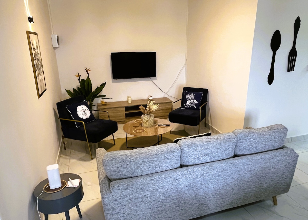 Con una ubicación ideal en Flic en Flac, este apartamento combina la comodidad moderna y el encanto tropical. Ofrece 2 dormitorios con camas de matrimonio, cada uno con baño, un luminoso salón y una cocina totalmente equipada. Relájate en el balcón o disfruta de una cena en tu azotea privada, equipada con tumbonas y unas vistas al mar impresionantes. A pocos pasos de las tiendas, los restaurantes y la playa, es tu refugio para disfrutar plenamente de la isla.
