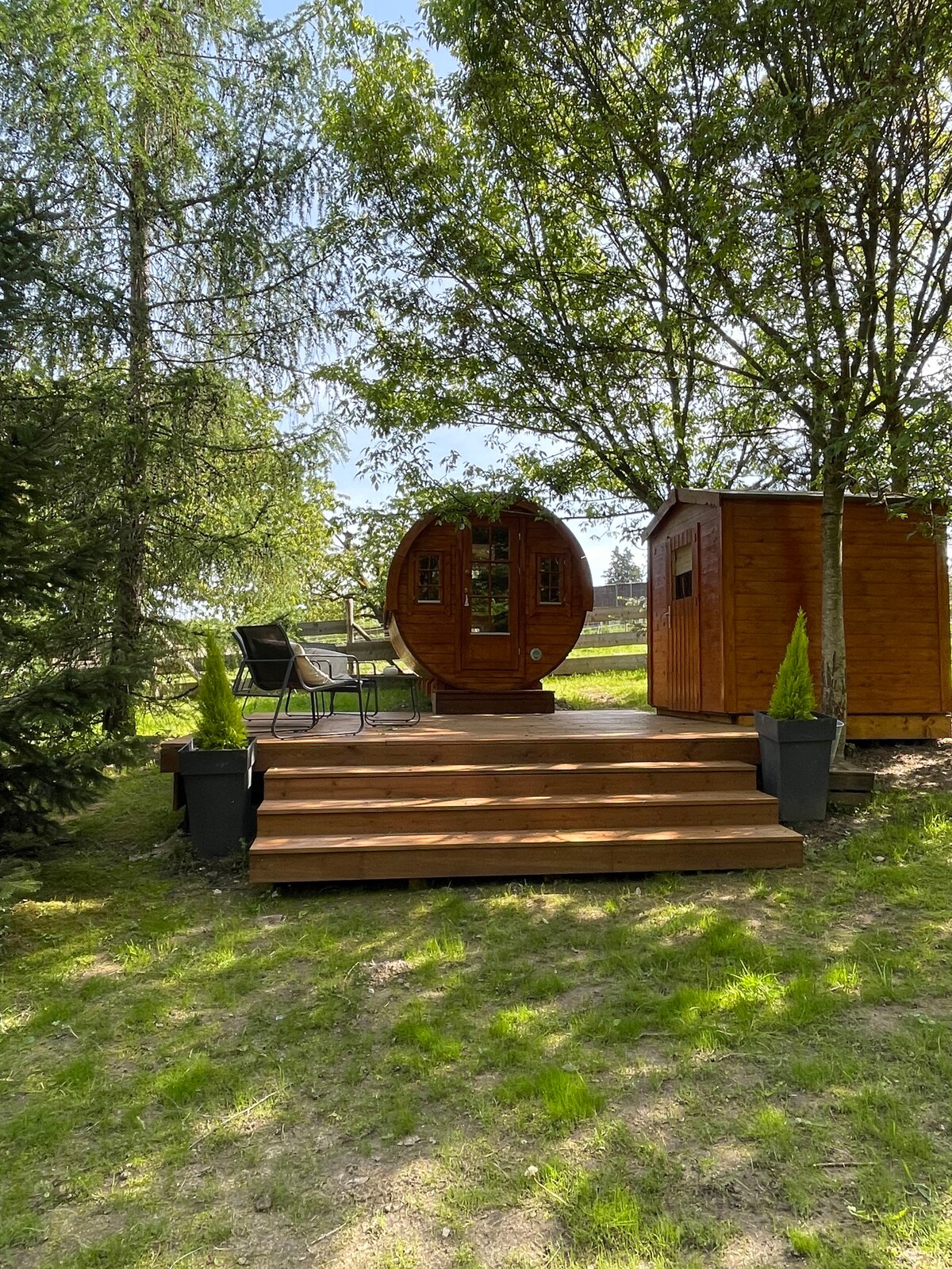 La casa, amueblada con 3 estrellas, consta de una sala de estar con una cocina abierta totalmente equipada. Desde el salón tendrá vistas a la naturaleza a través del ventanal. Arriba hay un dormitorio con una cama de 160 x 200, un baño con ducha y una lavadora. En el altillo hay una sala de estar muy bonita y acogedora, que se puede convertir en una cama de 160 cm x 200 cm o 2 camas de 80 cm x 200 cm, con televisión. Acceso wifi. La casa es para no fumadores. El alojamiento incluye escaleras para acceder a las habitaciones