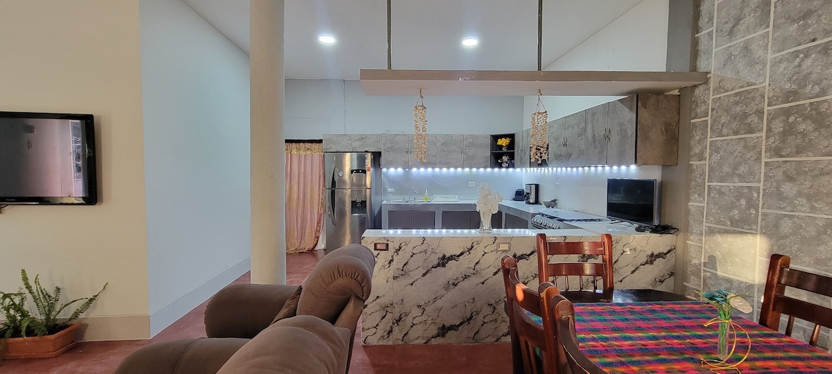 Este elegante alojamiento es ideal para viajes en grupo. Ideal para considerar el vieje de toda tu familia en un lugar elegante, con fácil acceso a restaurantes y centros comerciales a 2 Km de la isla de Flores 53 Km de parque Tikal, a 2 km del aeropuerto, direccion con acceso a servicio de comida a domicilio. Alojamiento: Nos encontramos en el centro de la ciudad, un lugar seguro para caminar o hacer ejercicos en las mañanas. Puede utilizar todos los accesorios de la casa sin costo adicional.