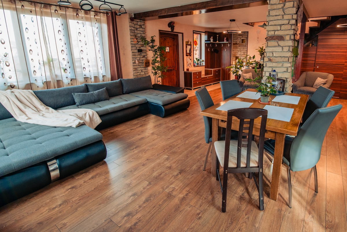 Es una casa familiar muy acogedora con un aspecto rústico. Está en un vecindario muy tranquilo de casas. En el patio trasero hay 2 plazas de estacionamiento y cenador de jardín con barbacoa. Cerca hay un mercado de programas sin parada y a 200 metros del restaurante. Wifi entero en toda la casa. La bebida Welcom está en casa y hace que las ciruelas sean licores.