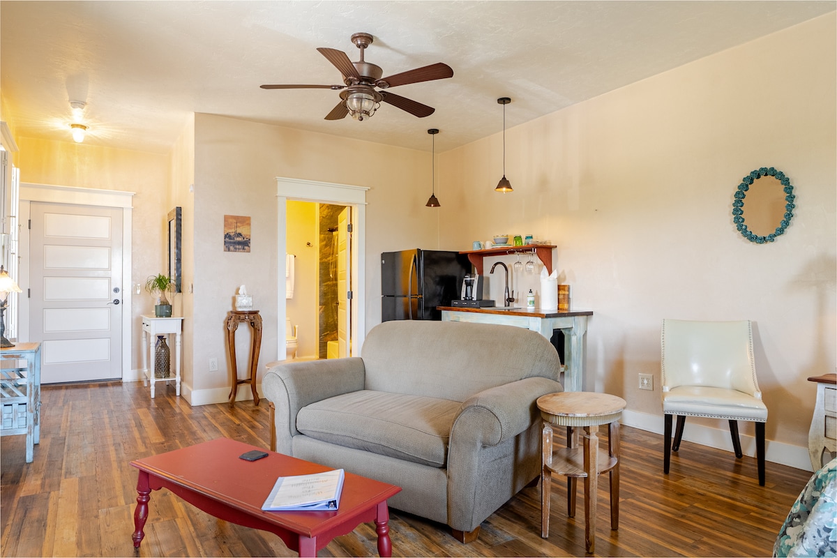 En Riverwood Suites no es solo una habitación, es una experiencia, es una experiencia. Imagínalo: subes, el exterior rústico puede llevarte por sorpresa. Al entrar en tu suite, notas el refrigerador de tamaño completo y la cama California King. Antes de ir al heno, toma un vaso de la cocina pequeña y dirígete al porche, mientras contemplas el centro de la ciudad. La mañana es agradable con la cafetera Keurig. Te relajas en el jardín trasero mientras esperas tus servicios de spa de Simply Bella Aesthetics.