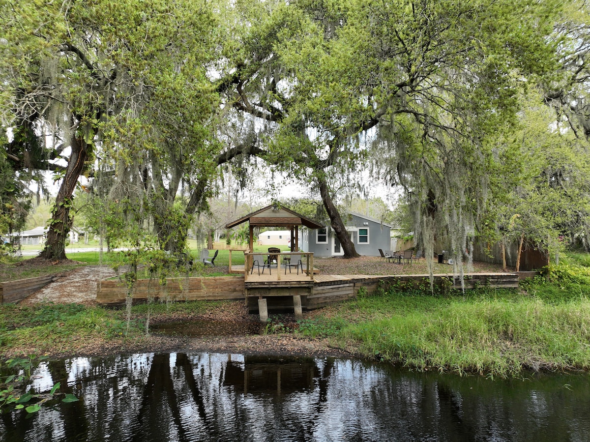 «RIVER BEND LODGE» es un albergue privado donde tu familia/grupo ocupa toda la vivienda, la litera del barco/sala de juegos. Es la joya del río St John's. Es una espectacular casa frente al río, construida a medida y diseñada para entretenerse y relajarse con su familia/grupo. El plano de planta abierto cuenta con una increíble cocina isla que se abre directamente a la gran sala con chimenea de piedra completa bajo techos abovedados con hermosas vigas de madera maciza para esas noches frescas.