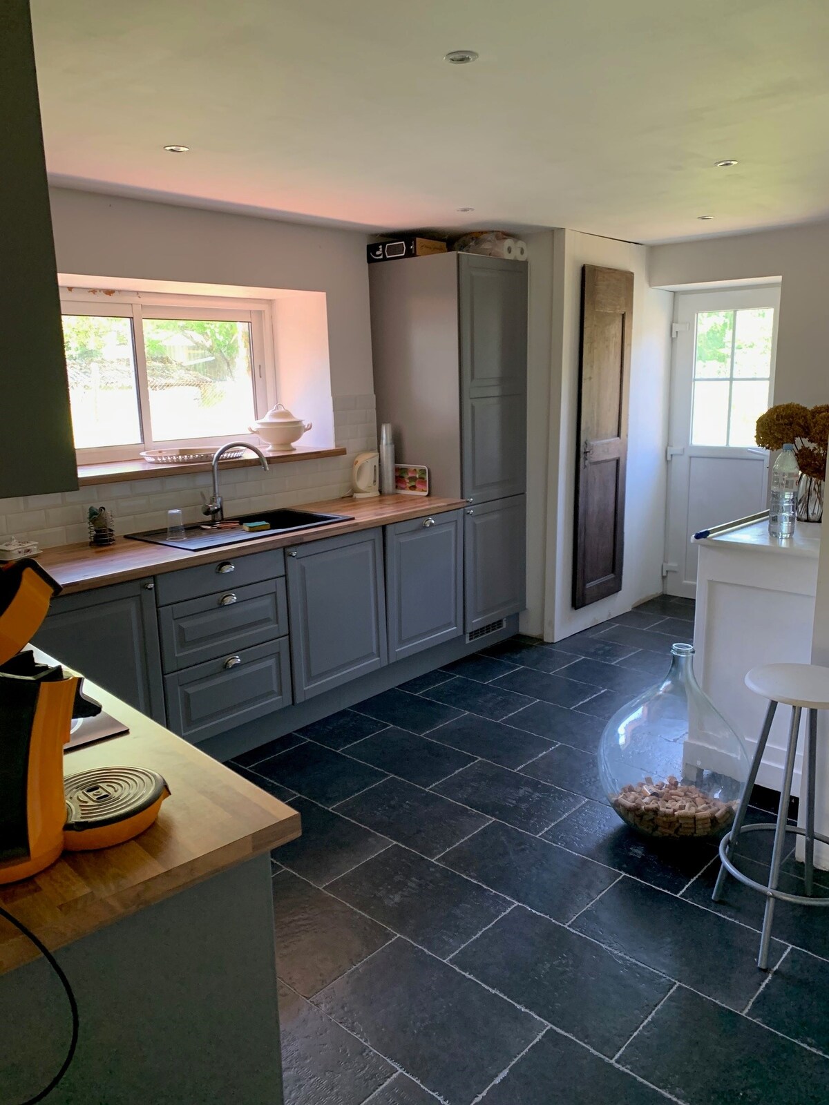 Esta casa, recientemente renovada, se encuentra en medio de una finca vitícola ecológica de 70 hectáreas, en la región cátara y cerca de Carcasonne. Ofrece magníficas vistas a los viñedos y bosques de los alrededores, ideal para pasear, con vistas a los Pirineos. Esta casa está junto a la granja central de los propietarios belgas, pero es totalmente privada. Durante su estancia, podrá disfrutar de una cata de vinos gratuita y de una visita a la bodega.