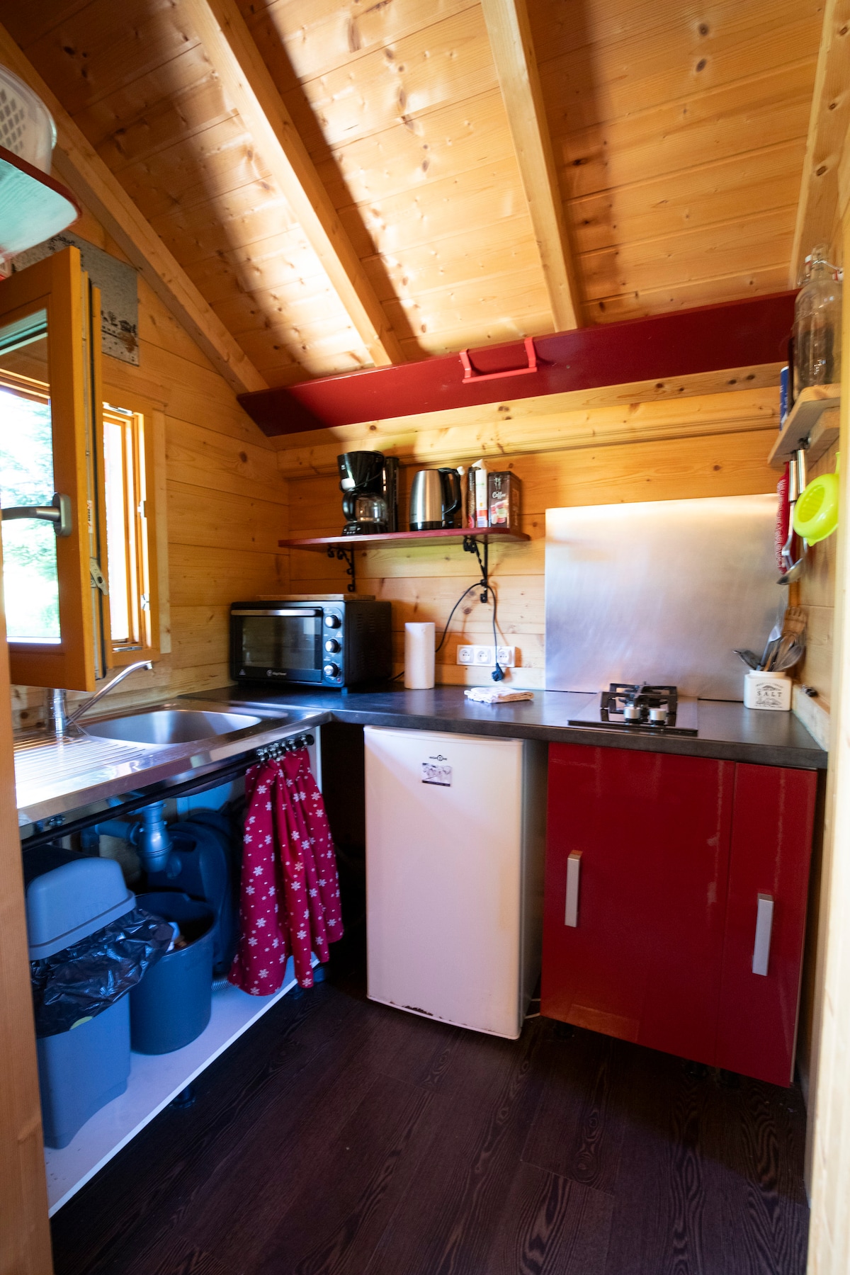 Envie d’un séjour au calme? Venez découvrir notre tiny house tout confort, au cœur du Jura. Un lieu chaleureux, idéal pour un couple ou petite famille. connexion Wifi assez faible. 3 couchages sur deux mezzanines ouvertes sécurisées: 1 lit double 1 lit simple (accès échelle - attention enfant, conseillé à partir de 6 ans) La Tiny dispose de: un coin repas, une cuisine équipée, une salle de bain avec douche et WC. Située dans notre cour, à proximité de notre maison, avec accès indépendant.