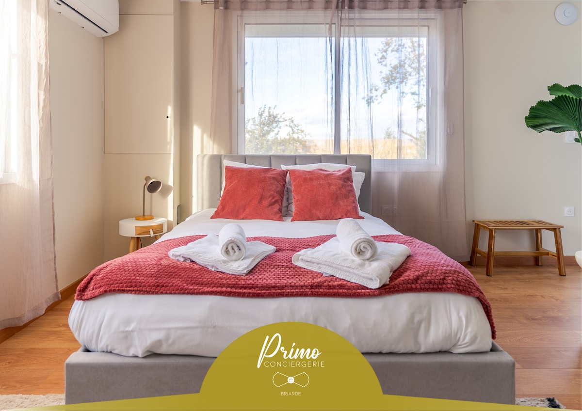 Casa espaciosa (300 m2) totalmente renovada, con todas las comodidades, ropa de cama de muy buena calidad, muy tranquila, a 1 km del centro de la ciudad (todos los comercios), se proporcionan sábanas y toallas. Wifi. Terreno de 4000 m², aparcamiento sin problemas, garaje para motos. Gran terraza, muebles de jardín, barbacoa, plancha, pista de petanca. Situado en el valle del Petit Morin, a 30 minutos de la capital del Champagne Épernay, a 40 minutos de Eurodisney, a 1 hora de París y Troyes y a 20 minutos de Chateau Thierry (estación de tren).