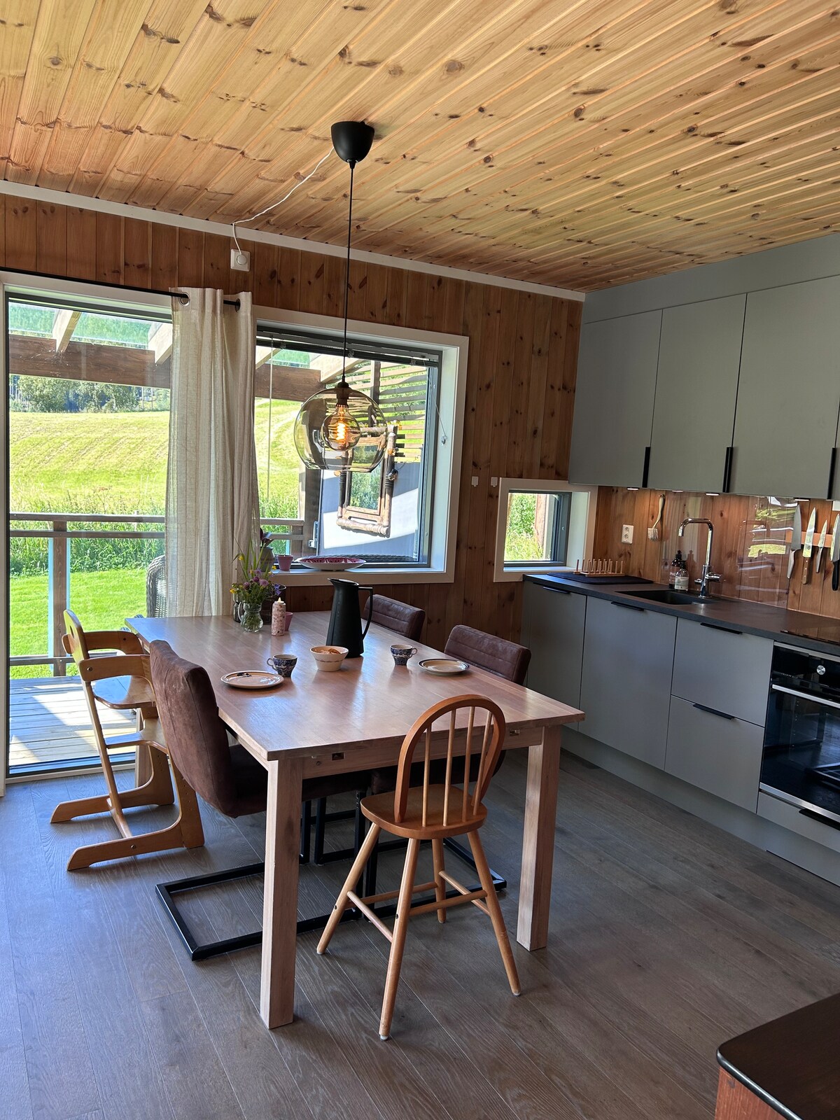 Lugar agradable y tranquilo con vistas fantásticas. Terraza privada de 40 m2 solo para ti. Lugar tranquilo, calle privada con pocas casas. Se admiten familias y mascotas. Ubicado a 220 metros sobre el nivel del mar. Muy hermoso durante todo el año. Bien ubicado a 1,3 km de la carretera principal, 8,3 de Stryn. Hay parque infantil, casa de juegos, trampolín, chimenea al aire libre, cascada con presa natural en el patio trasero.