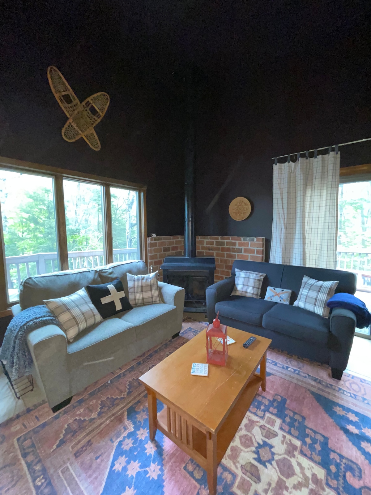 Enjoy memorable mountain views at this lovable 3 bedroom cabin, located just a 5-minute walk from the Ski Brule lifts. Fire up the gas grill and host a cookout on the scenic back deck. Spend your nights making s’mores at the campfire pit, then cozy up inside by the wood burning stove inside while watching your favorite streaming services. A perfect cabin to gather and relax with friends and family.