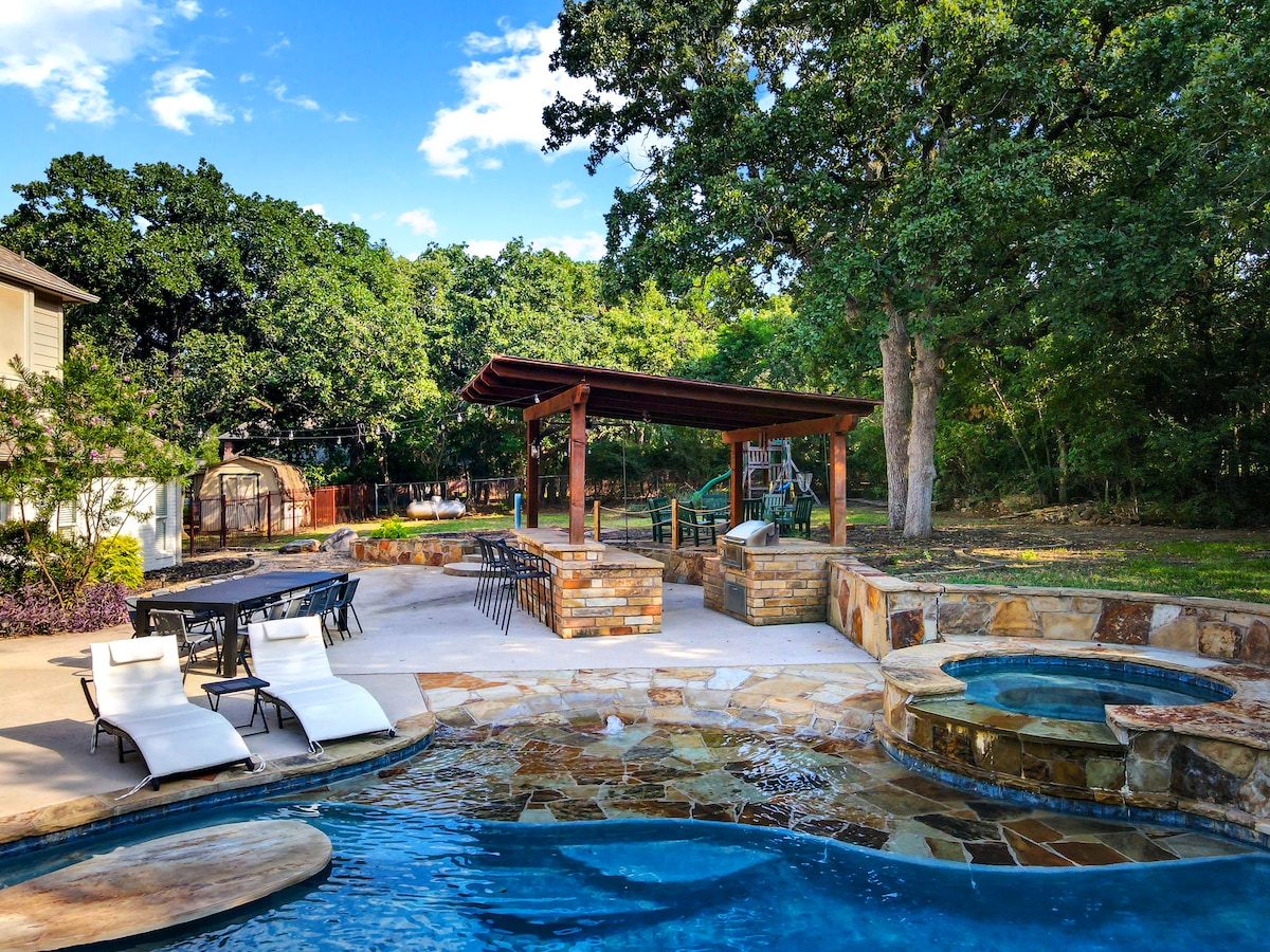 Refugio de 5 habitaciones en DFW: piscina, jacuzzi y cine