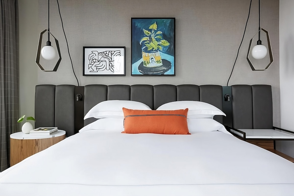 Entra en nuestra habitación Queen de 120 pies cuadrados, donde las comodidades modernas se combinan a la perfección con un diseño curado. Disfruta de la comodidad de una televisión inteligente, una mininevera y una cafetera para tu dosis de cafeína. Perfectamente adaptada para dos huéspedes, nuestra habitación queen garantiza una estadía cómoda y elegante. Ten en cuenta que, como todas las piezas antiguas del hotel han sido cuidadosamente seleccionadas por Fonde Interiors, los muebles varían según la habitación. Los escritorios no están garantizados en ninguna habitación.