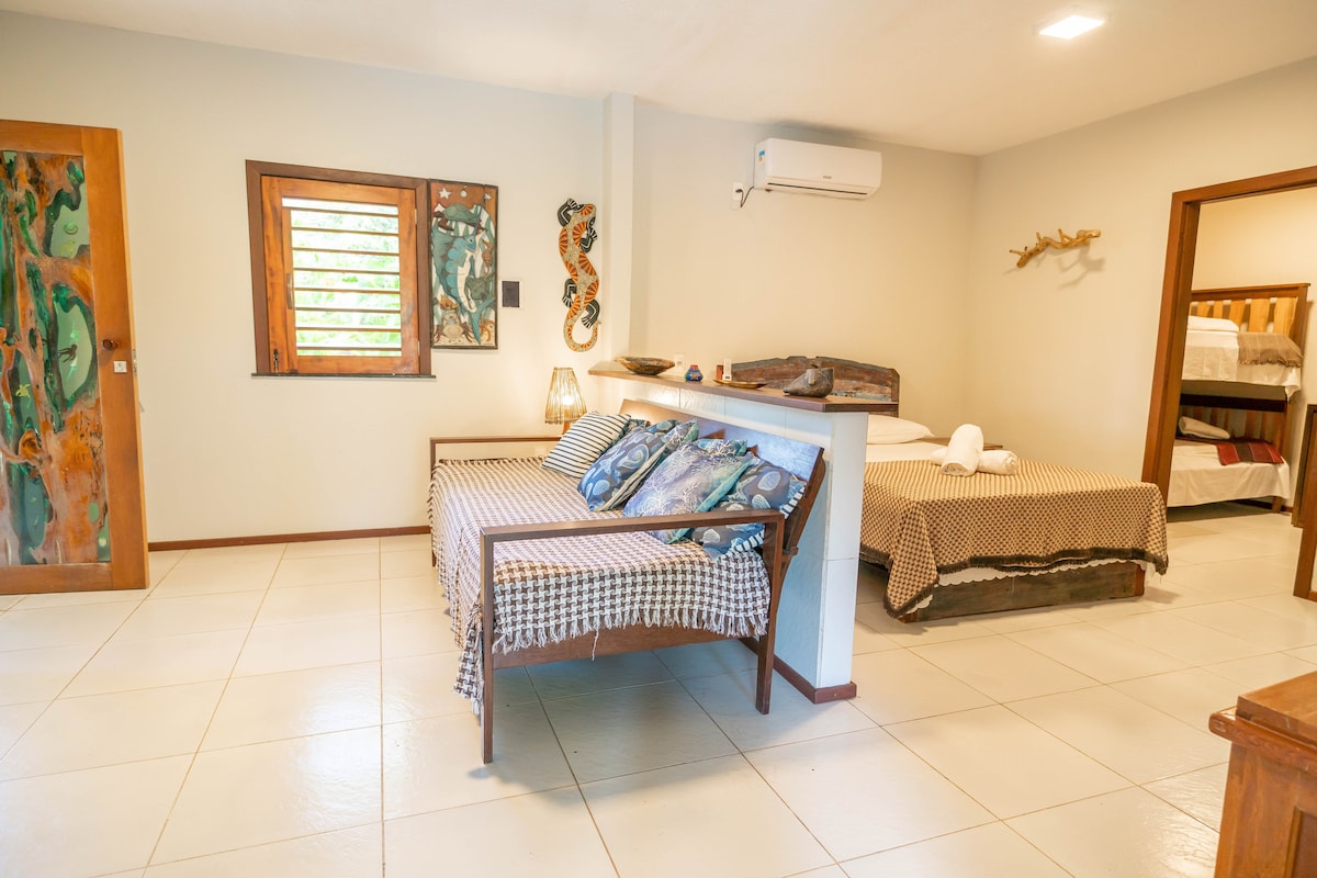 ¡El triple bungalow de Casa do Pier en Fortim! ¡El mejor alojamiento de la región con una ubicación perfecta, junto al río y el mar de Fortim! Este hogar tiene: - Casa Casal + Cama individual + Baño. - Aire acondicionado + TV inteligente + balcón exclusivo *Todas nuestras suites tienen aire acondicionado para mayor comodidad y los huéspedes tienen acceso a la sala de estar de la posada, que tiene una hermosa piscina y jacuzzis con aire acondicionado.