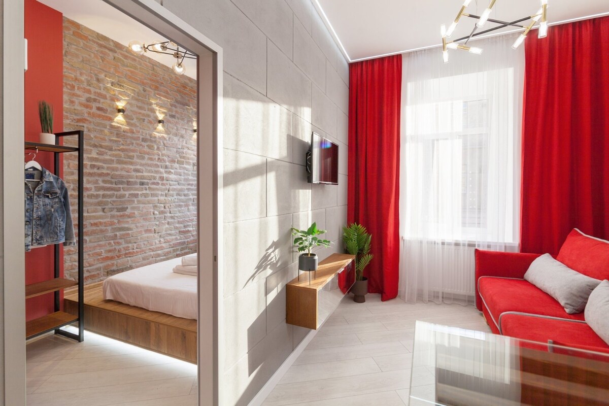 Disfruta del ambiente elegante de este alojamiento en el corazón de la antigua Lviv. Todos los monumentos arquitectónicos están a poca distancia a pie: Teatro de la Ópera Plaza del mercado Avenida central con una fuente Museo del Mercado,, Vernissage,, El departamento se encuentra en la zona del patrimonio histórico de la UNESCO, Moderna renovación de estilo loft con todo lo necesario para una estancia cómoda