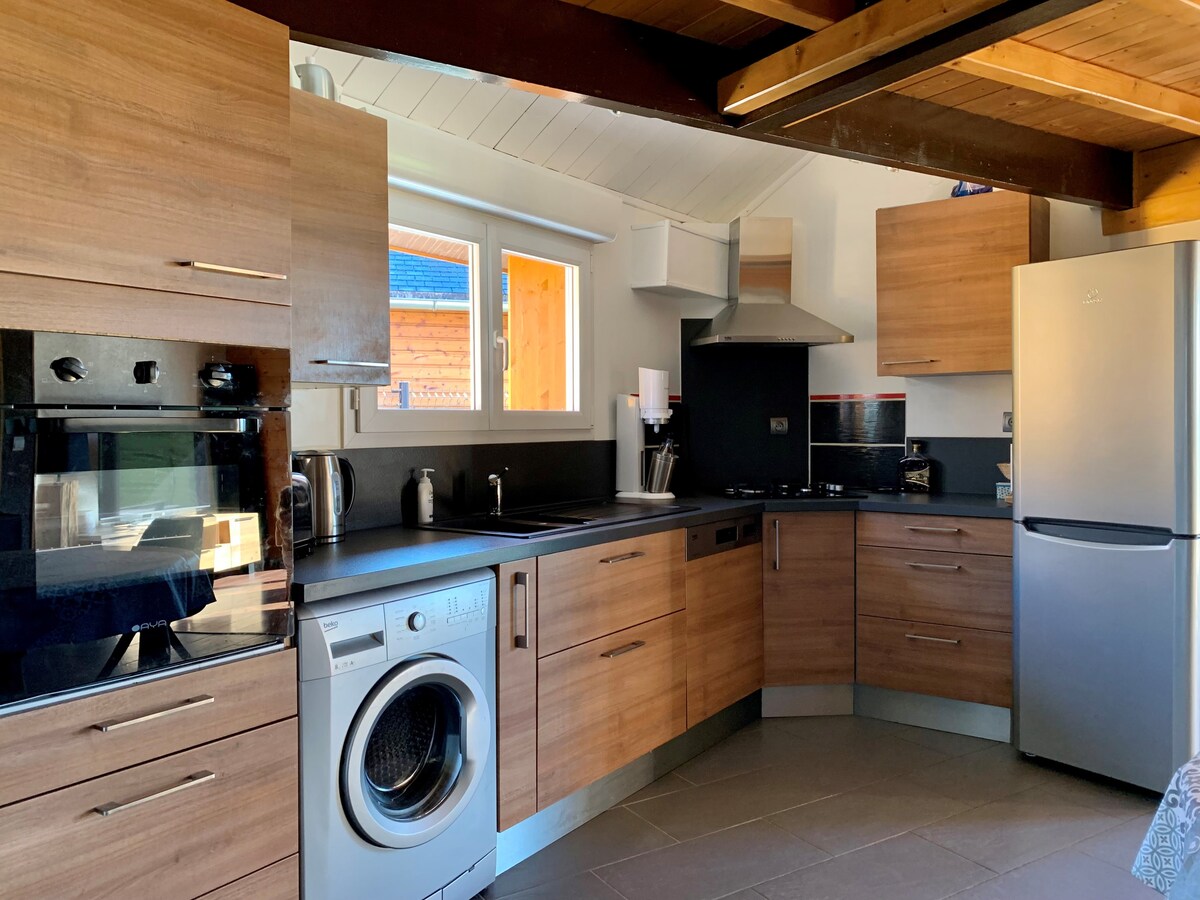 Hyttami 5 es una cabaña, un chalet, una casa rural. Completamente renovado en 2020, este magnífico alojamiento se encuentra al lado de la casa de sus anfitriones. En medio de los huertos disfrutará de una vista excepcional y de la tranquilidad del campo, a la vez que estará cerca de la ciudad, el lago y las montañas. El alojamiento ha sido renovado en 2020. Dispone de terraza, plaza de aparcamiento y está vallado en el perímetro de la parcela.