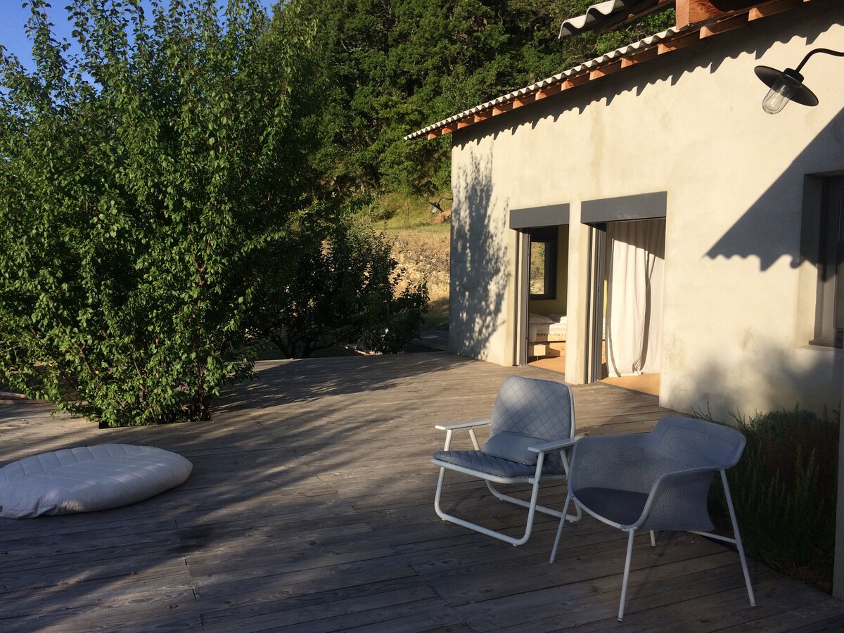 Vercors Sud, entre las montañas y Drôme Provençale, una inmersión en el corazón de la naturaleza en un lugar aislado. Últimos 2 km por carretera sin pavimentar. Casa cálida y cómoda, ubicada a 500 m de altitud, a 150 metros de la casa del propietario, compuesta de 1 habitación con cama doble, otra con una cama doble y 2 camas individuales, cocina equipada con estufa de leña, sala de estar con chimenea y 1 baño. Muchas actividades cercanas: senderismo, ciclismo de montaña, escalada, natación en el río, gargantas de Omblèze, Gervanne, Drôme, Roanne...