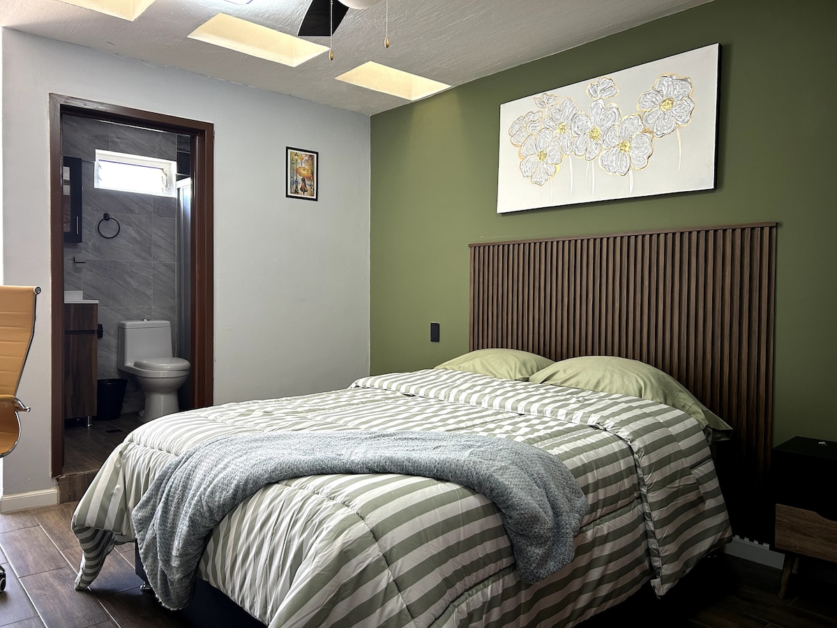 Disfruta de la calidez y diseño eficiente de este alojamiento tranquilo y céntrico. En Casa Las Águilas encontrarás un lugar acogedor para hospedarte a un excelente precio. Cada estudio cuenta con cocineta y baño completamente independientes. Entrada autónoma a través de 2 claves electrónicas: 1 de entrada principal, 2 de tu estudio. El estudio #2 se encuentra en planta baja. Cuenta con cama matrimonial, frigobar, microondas, parrilla eléctrica de dos quemadores, mesa de trabajo, closet y tv.